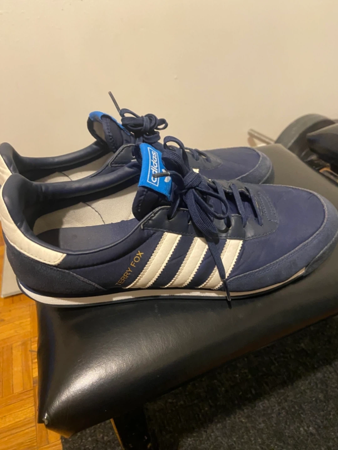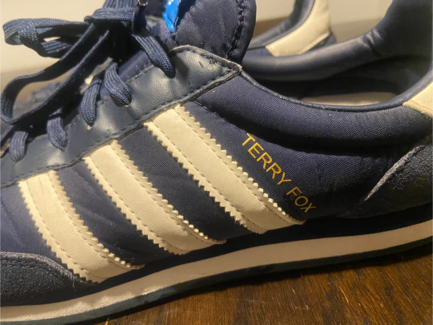 A chance to get the iconic terry fox Selling a pair of Adidas Terry Fox running shoes. They are in good condition with the classicAdidas stripes. Great for casual wear or light jogging. The shoes feature a comfortable sole and a stylish design. Don't miss out!
