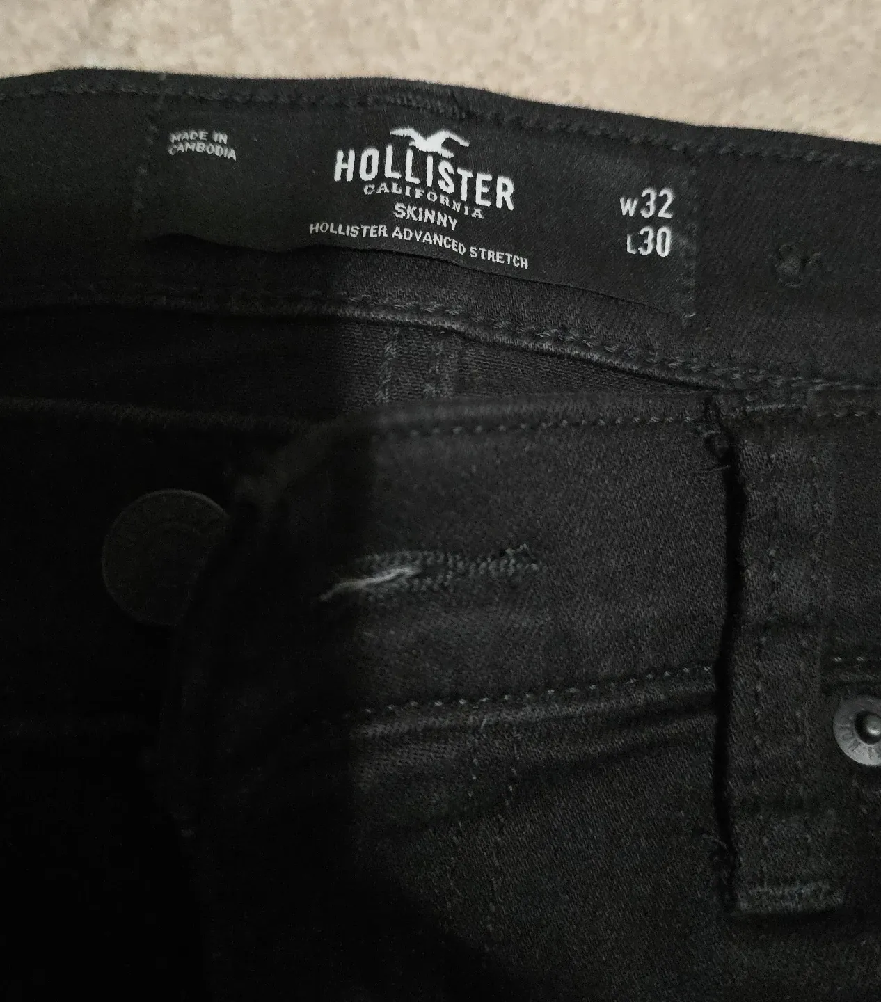 Selling a pair of Hollister Skinny jeans in size W32 L30! They're black and have Hollister Advanced Stretch, making them super comfy