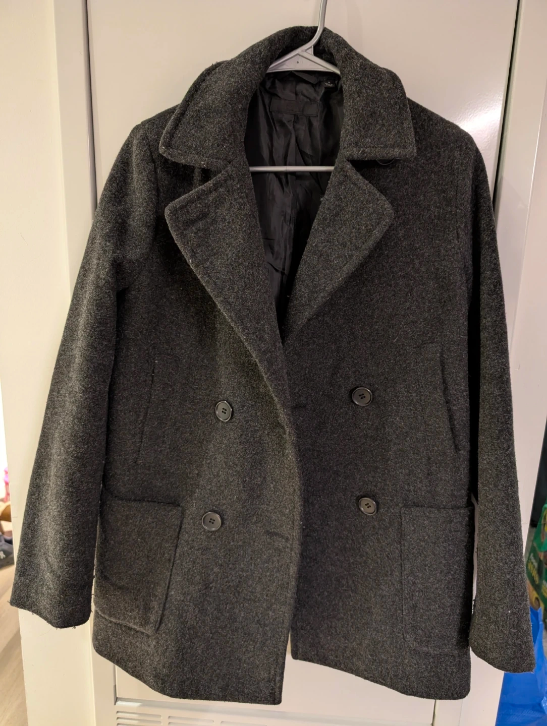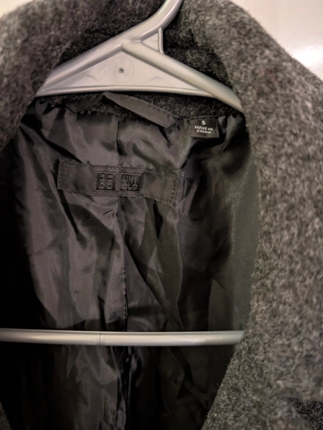 Selling a stylish wool blend pea coat from Uniqlo! It's a size small and in great condition. This coat is perfect for cooler weather and has a classic, versatile look. It would be a great addition to any wardrobe!