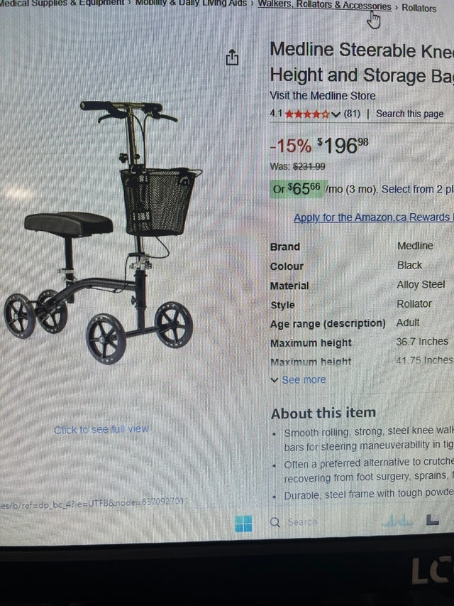 Buy & SellMEDLINE GENERATION 4 BASIC 4-WHEELED KNEE WALKER - 300LB MAXMEDLINE GENERATION 4 BASIC 4-WHEELED KNEE WALKER - 300LB MAX$100Brand New. There is a small paint chip mark on the seat pole from delivery.WHERE TO MEETCheck LocationView MapSELLERDimaConcord100 reviews0 chats·1 favorites·14 viewsSEND CHAT TO SELLERHi Dima! I’m interested in your listing.Hi Dima! I’m interested in your listing.Get the Karrot app to chatSign In to chat