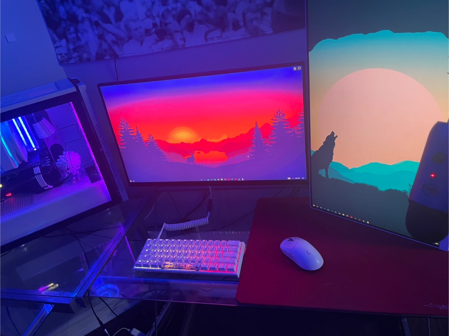 The side monitor is 120hz white Asus monitor. Bought this year and it's connected with a dual setup arm, but I also have the stock stand if interested $200