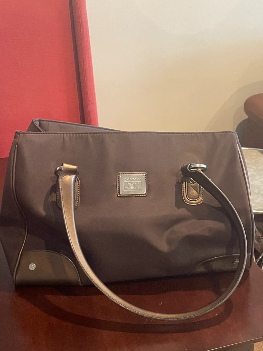 Fashionable Liz Claiborne nylon bag. Dark brown