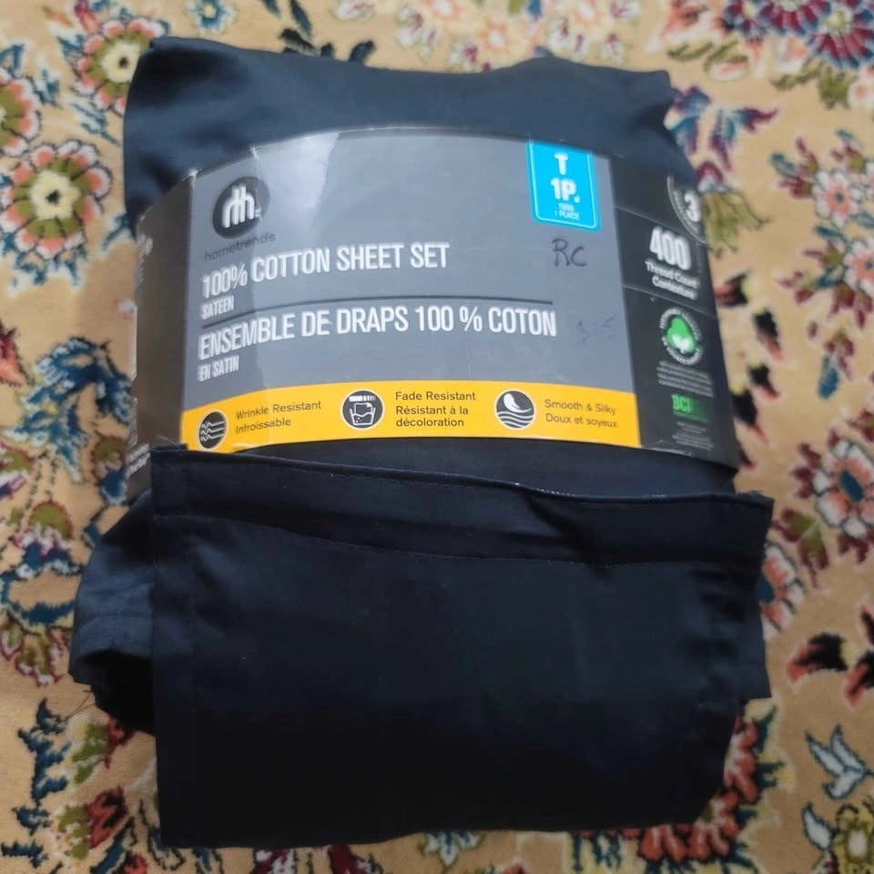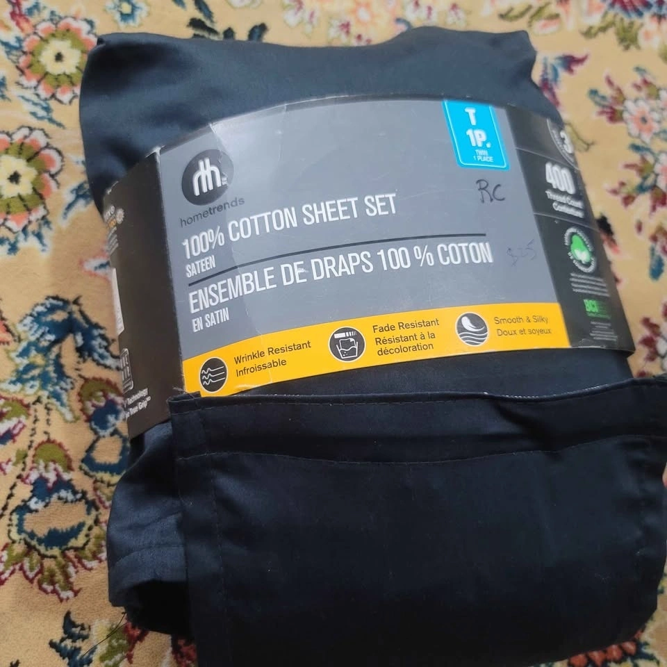 3 piece Twin size 100% Cotton Sheet Set Sateen Black