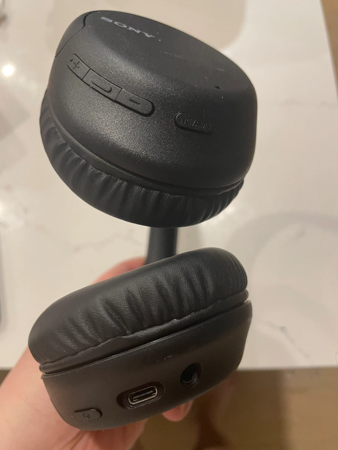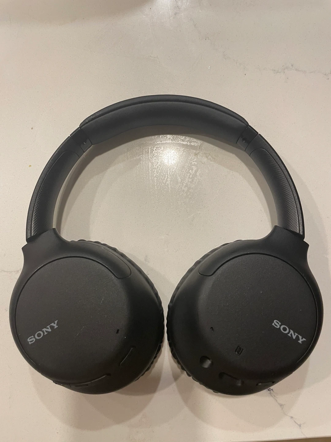 Selling a pair of Sony WH-CH510 wireless headphones in black. They're in great condition and ready for a new owner! These headphones are lightweight and portable, perfect for on-the-go listening. If you're interested, feel free to message me!
