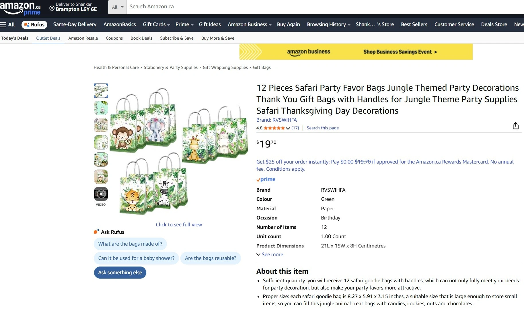 Get ready to party with these adorable safari jungle themed favour bags! This set includes 12 paper bags, perfect for filling with treats and goodies for your little one's birthday celebration. Each bag features a cute animal design and is made of high-quality kraft paper. Originally bought for $19.70.