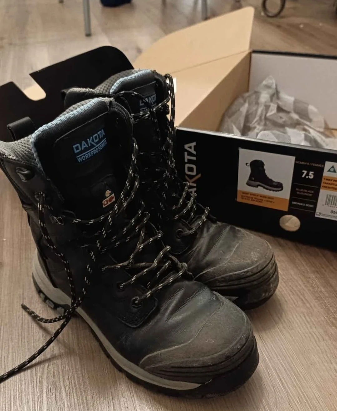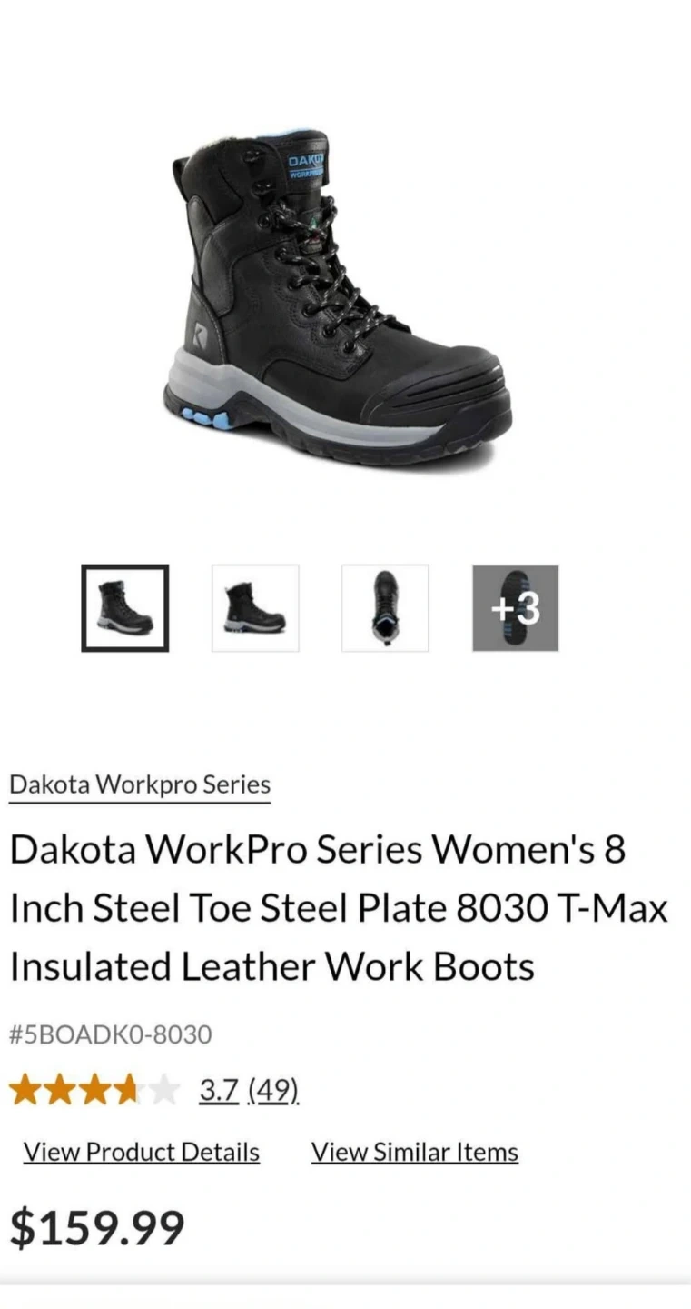 Selling a pair of Dakota Workpro Series Women's 8 Inch Steel Toe Steel Plate 8030 T-Max Insulated Leather Work Boots in size 7.5. These boots feature T-Max insulation/isolation, and are anti-slip with Freshtech. They are blue/black. The box is included! Originally bought for $149.99. Used just for one week.