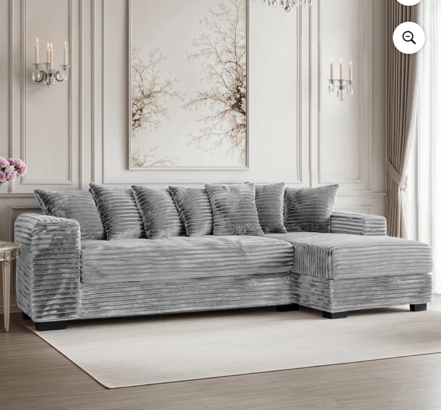 Selling a comfy light gray corduroy sofa with a matching ottoman! It's in great shape and ready for a new home. The actual color is light gray, and it's super cozy!
