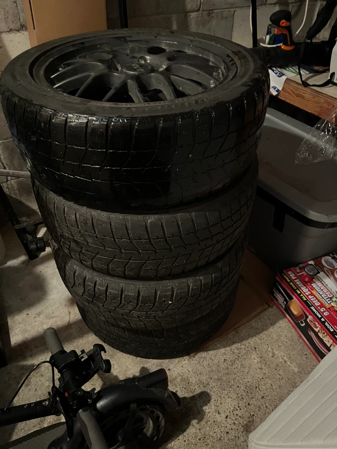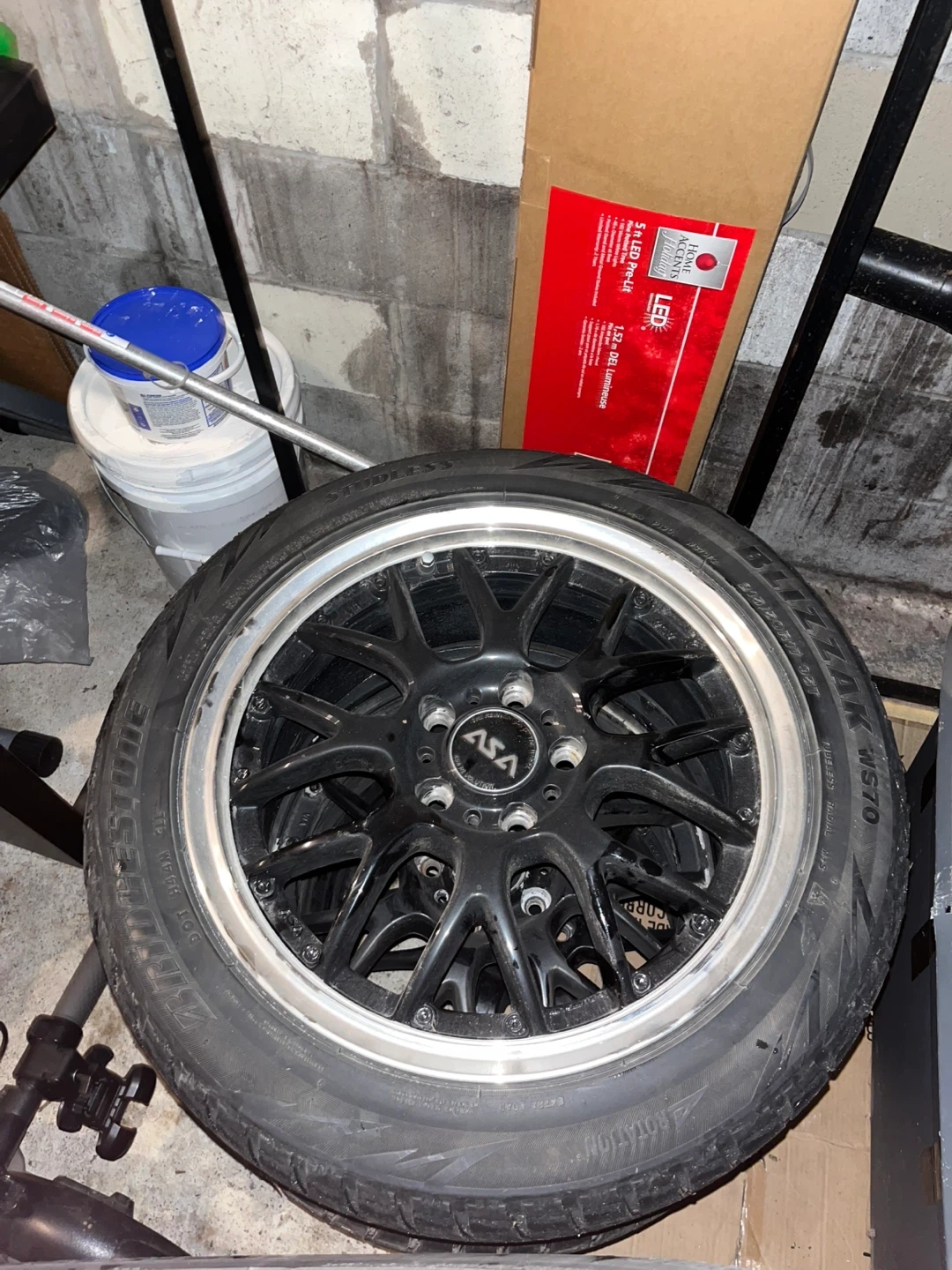 Selling a set of ASA rims with Bridgestone tires. The tires show some wear, but the rims are in good condition. Perfect for a spare set or to replace worn tires. Negotiable.