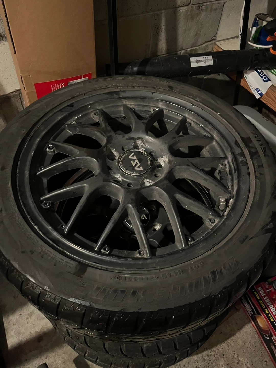 Selling a set of ASA rims with Bridgestone tires. The tires show some wear, but the rims are in good condition. Perfect for a spare set or to replace worn tires. Negotiable.
