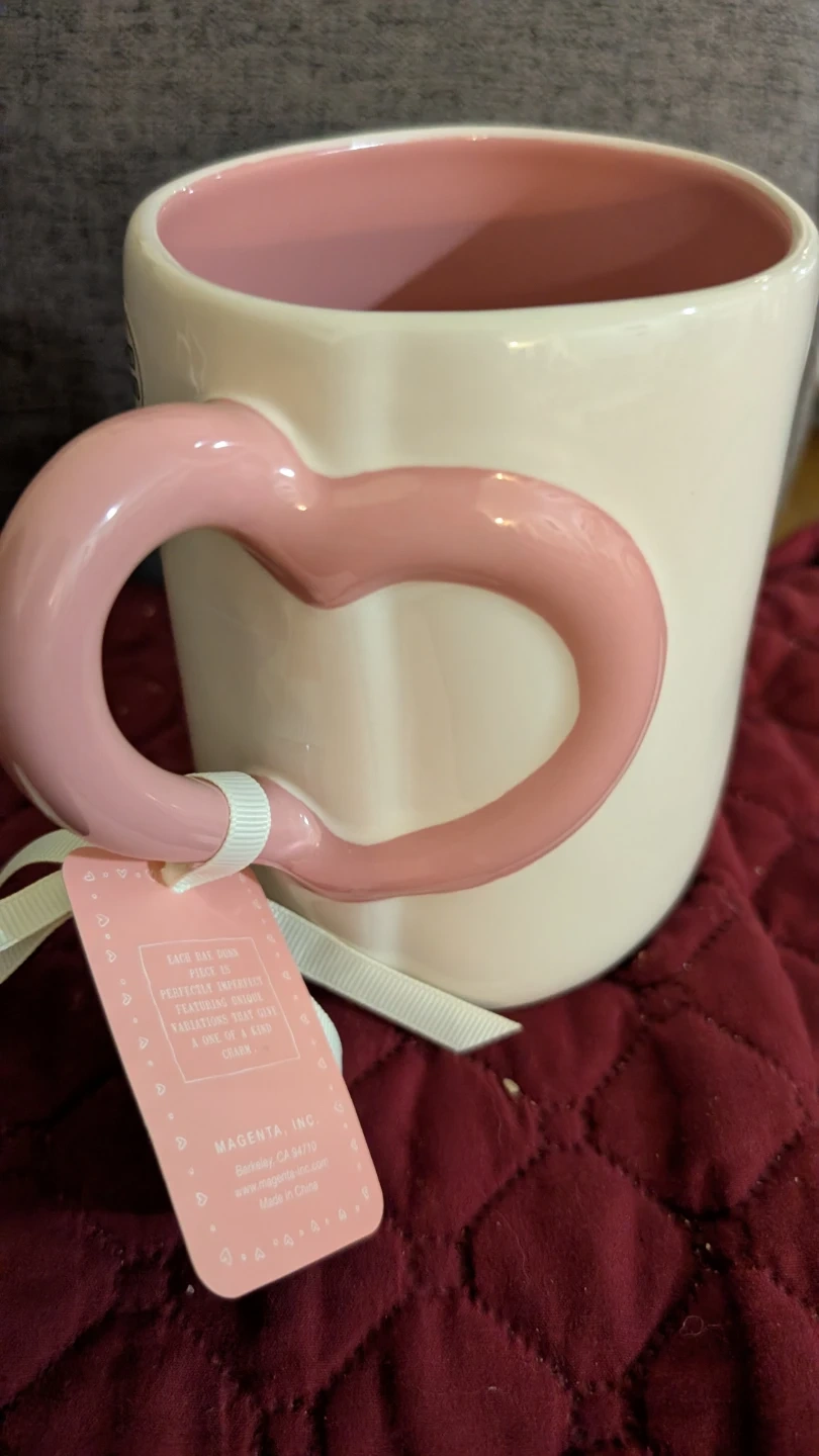 Selling a brand new Rae Dunn mug with a cute heart handle and 'Be Mine' text! It's a perfect addition to your collection or a sweet gift for someone special