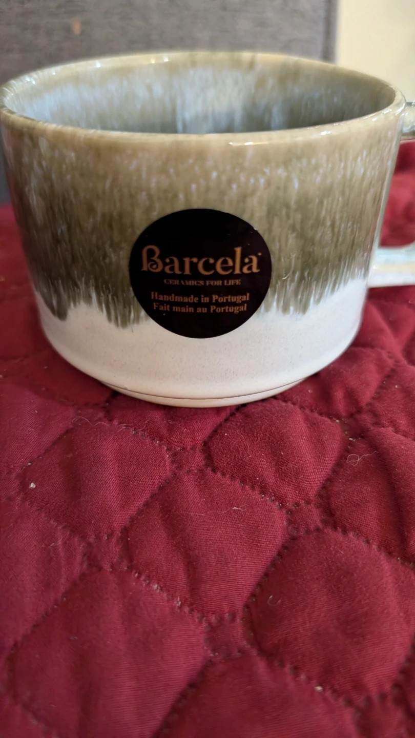 Selling a lovely Barcela mug, handmade in Portugal. It's in great condition and ready for your favourite hot beverage. It's microwave, oven, and freezer safe, plus dishwasher safe too!