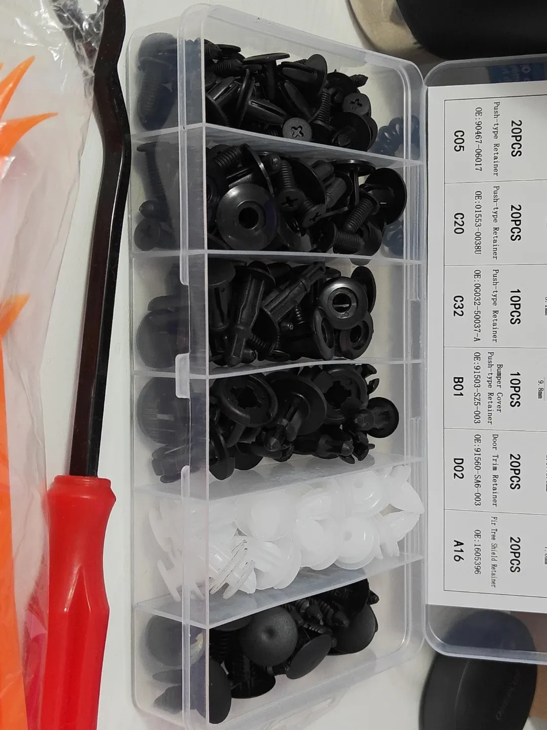 Selling a brand new set of assorted car retainer clips! The set includes various types such as push-type retainers, bumper cover retainers, door trim retainers, and fir tree shield retainers. You'll find a selection of clips with OE numbers like 90467-06017, 01553-0038U, OG032-50037-A, 91503-SZ5-003, 91560-SA6-003, and 1605396. Get all your retainer needs in one convenient kit!
