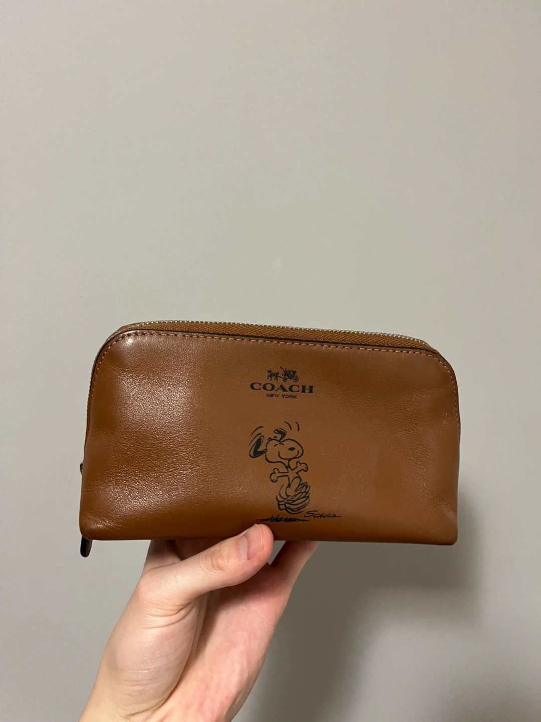 Here's a cute Coach pouch featuring Snoopy! It's a great size for carrying small essentials. The pouch is in excellent condition and ready for a new home