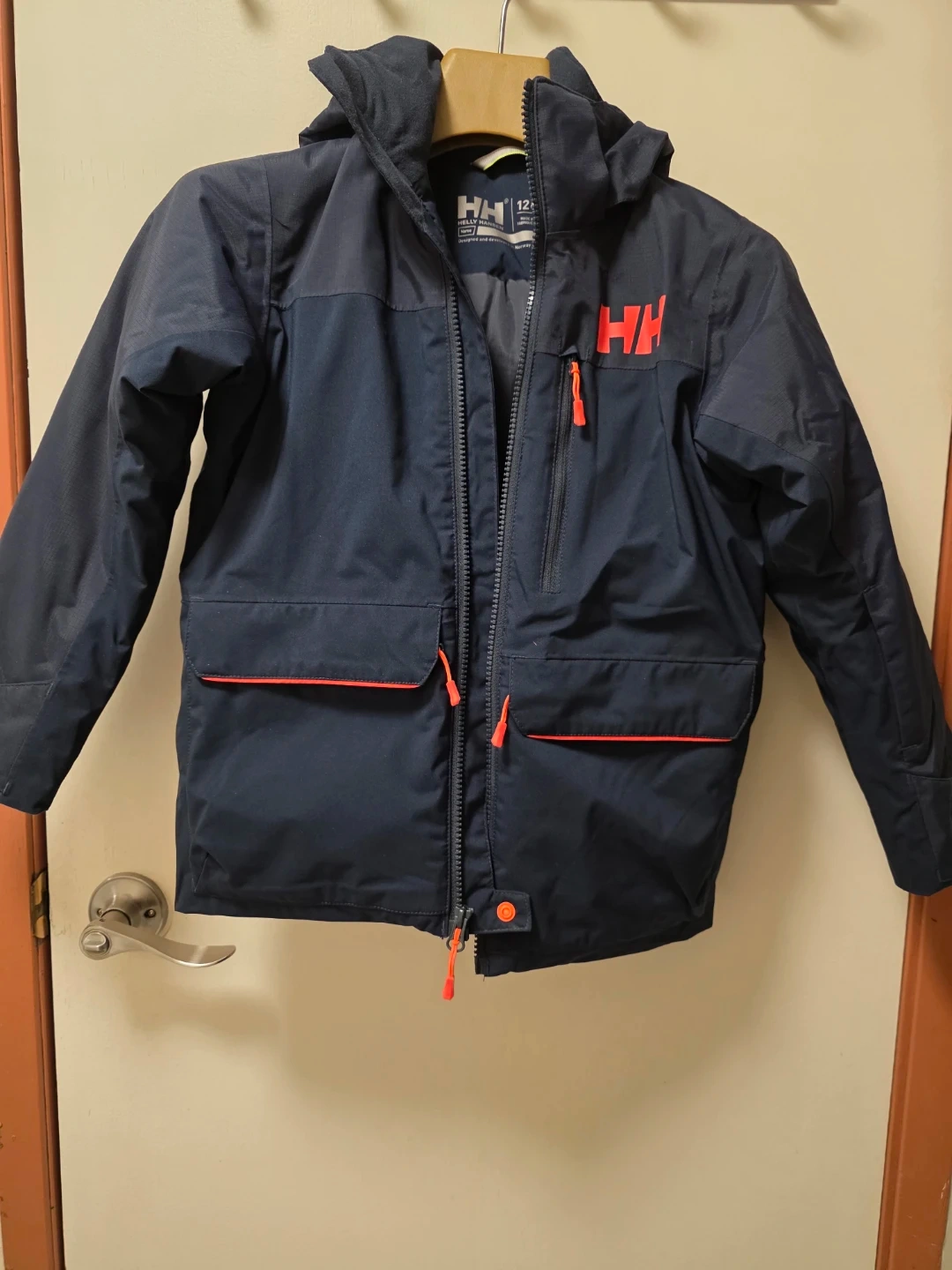 Selling a Helly Hansen kids' winter jacket in size 128/8. It's a stylish and functional jacket perfect for keeping your little one warm during the colder months. The jacket features a hood and several pockets. Great for outdoor adventures! Used once. Pick up by South Arm
