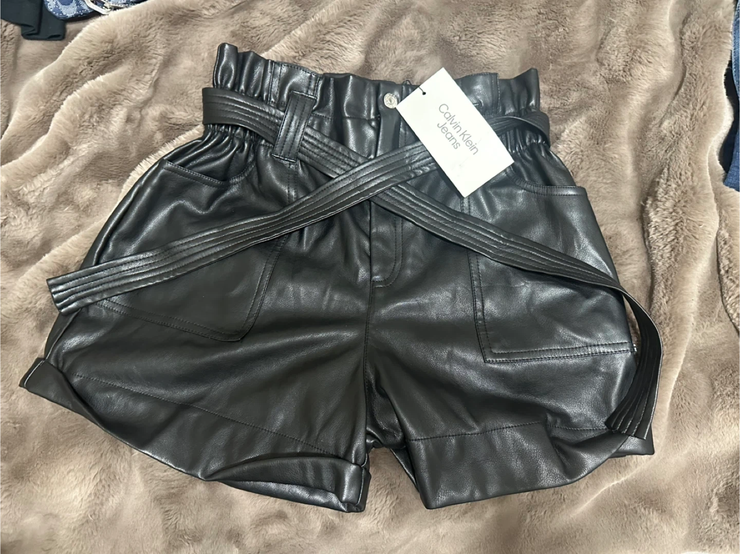 These Calvin Klein Jeans shorts are in excellent condition and ready for a new home! They're a stylish black faux leather with a belted waist. Size small, perfect for adding a bit of edge to your wardrobe.