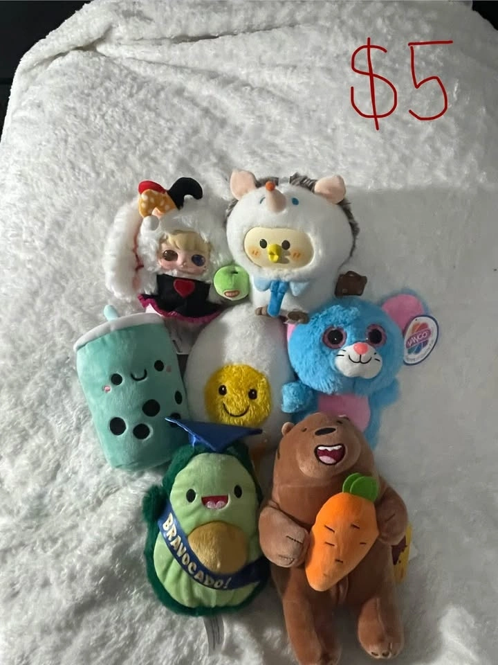 Buy & SellPlushies!!Plushies!!$5Lots plushes of varying sizes! Nice and cute for many children! Barely used, mainly decorations Lg- $10 Med-$5 Sm-$3ConditionLike newWHERE TO MEETWalmartView MapSELLERverifiedAveryFox Hollow650 reviews0 chats·0 favorites·11 viewsSEND CHAT TO SELLERHi Avery! I’m interested in your listing.Hi Avery! I’m interested in your listing.Get the Karrot app to chatSign In to chat