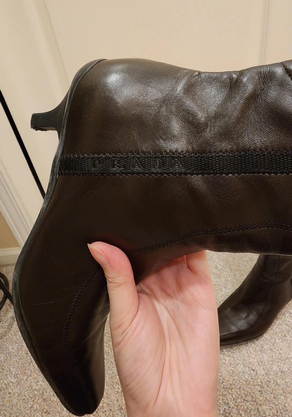 Prada Milano Kitten Heels Leather Ankle Boots | US 7 🧡