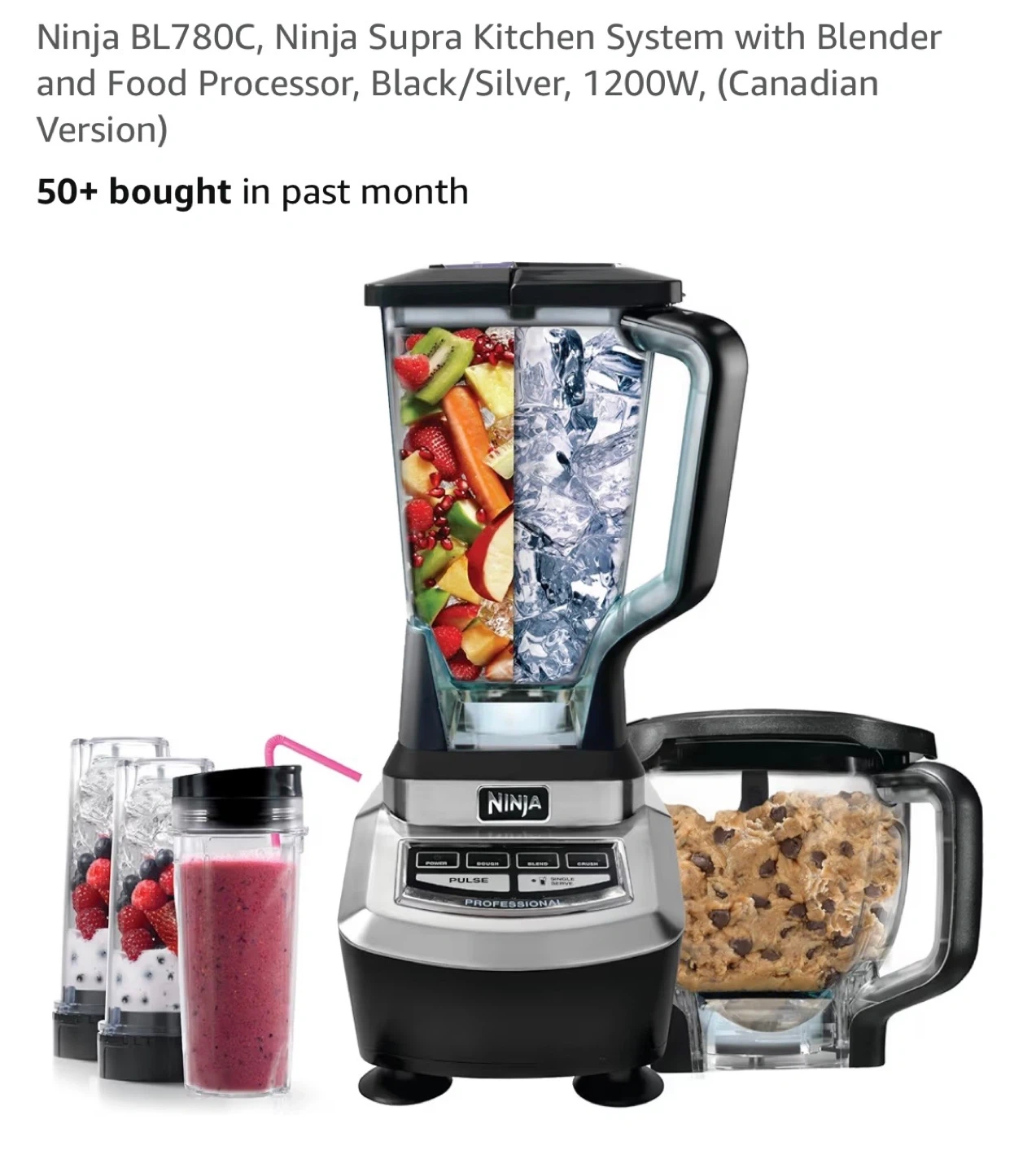 Buy & SellBlenderBlender$210Ninja BL780C, Ninja Supra Kitchen System with Blender and Food Processor, Black/ Silver, 1200W Brand new box not openConditionNewBrandNinjaWHERE TO MEETCheck LocationView MapSELLERUpkaranDowntown Toronto100 reviews3 chats·1 favorites·46 viewsSEND CHAT TO SELLERHi Upkaran! I’m interested in your listing.Hi Upkaran! I’m interested in your listing.Get the Karrot app to chatSign In to chat