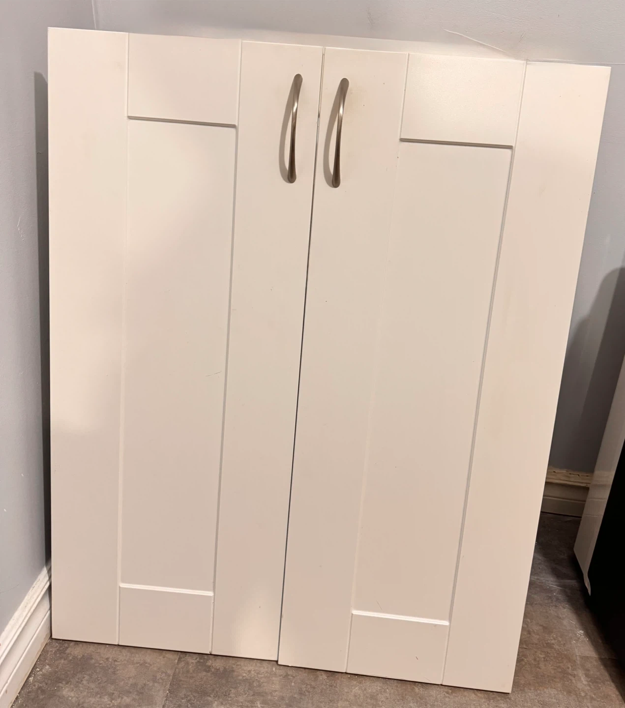 Selling a pair of white cabinet doors. They're in good condition and ready to be installed in your kitchen or bathroom