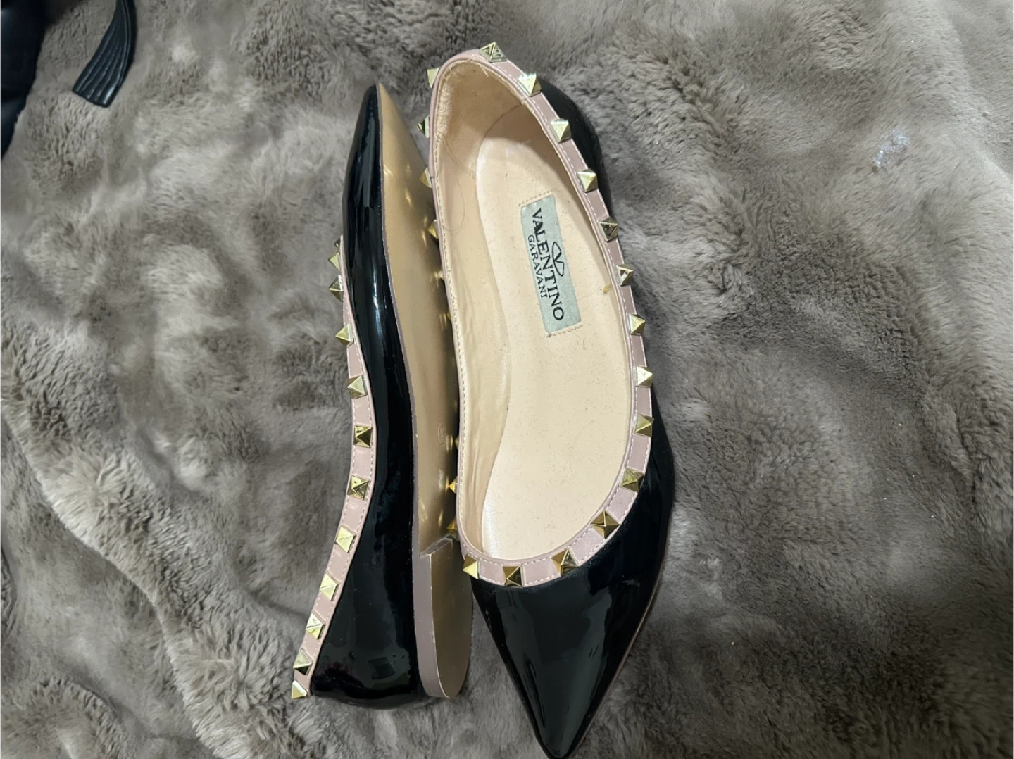 Selling a pair of Rockstud ballerina flats. They're in good condition and feature the iconic Rockstud detailing. Perfect for adding a touch of edgy elegance to any outfit!