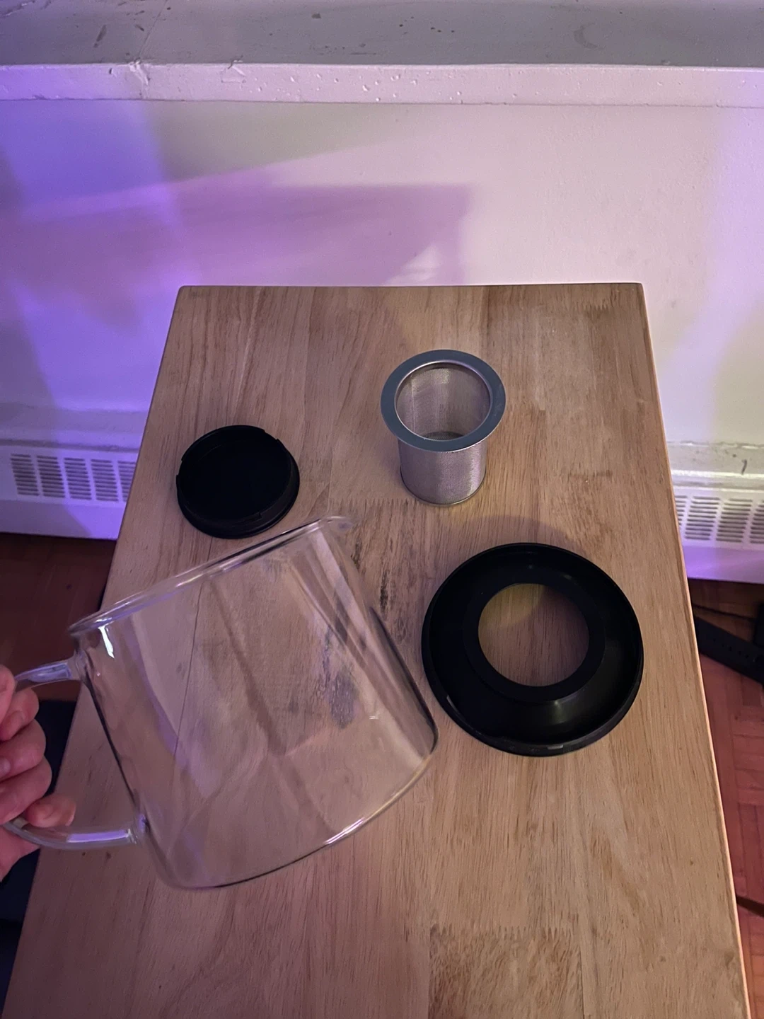 Selling a clear glass teapot that comes with its own infuser. It's perfect for brewing loose leaf tea. Includes the lid and all components shown in the photos. Great for a cozy cuppa!
