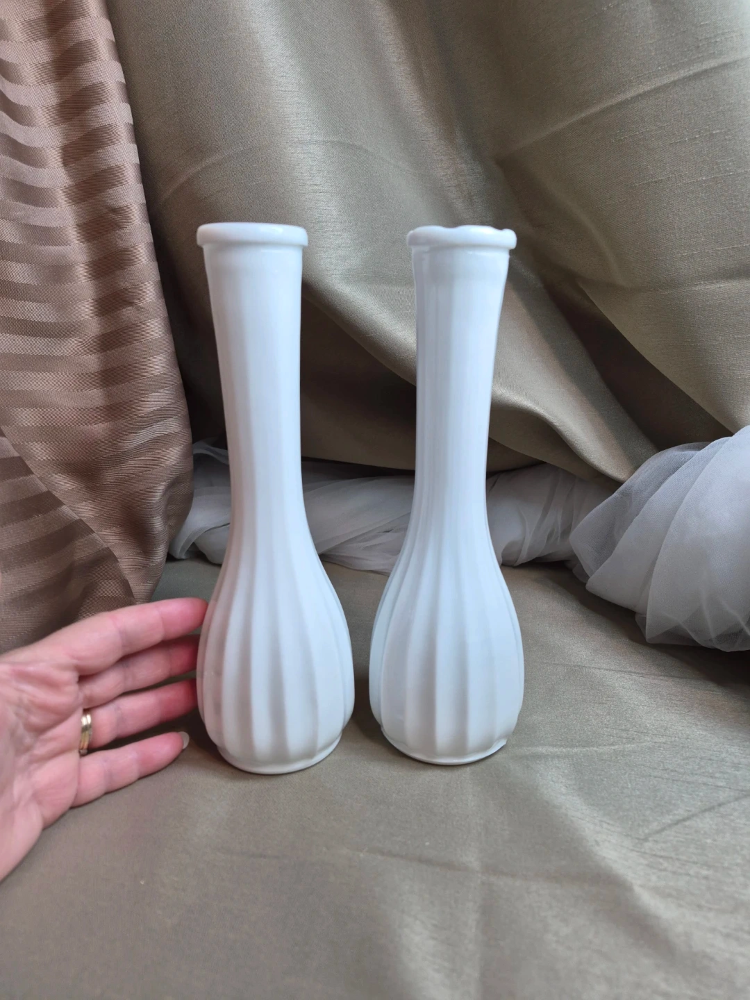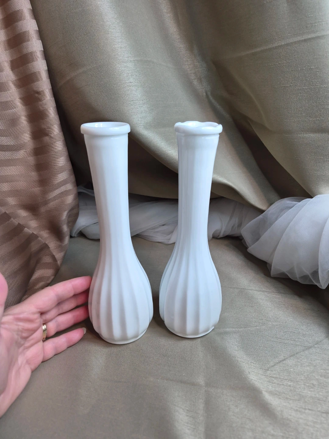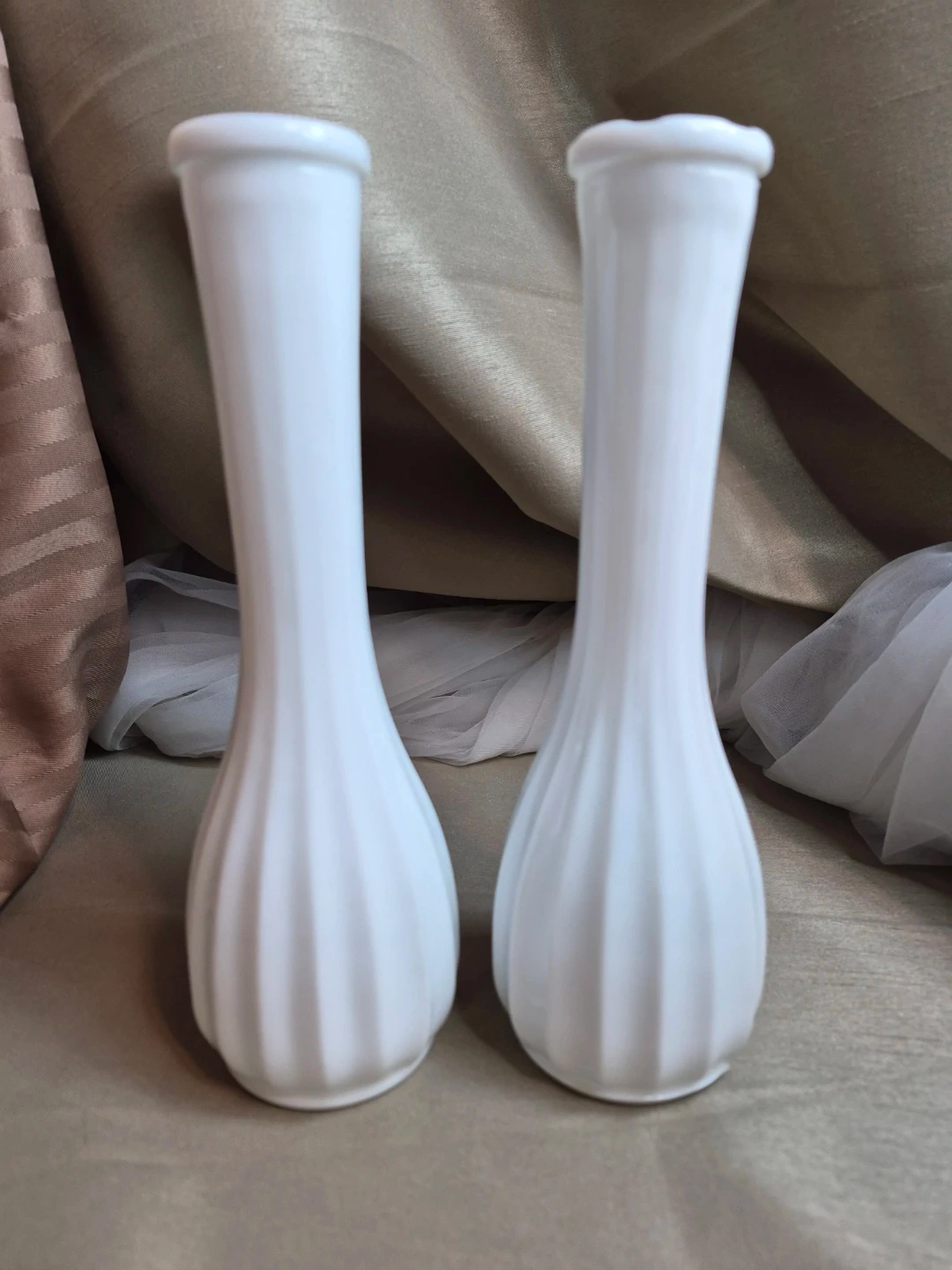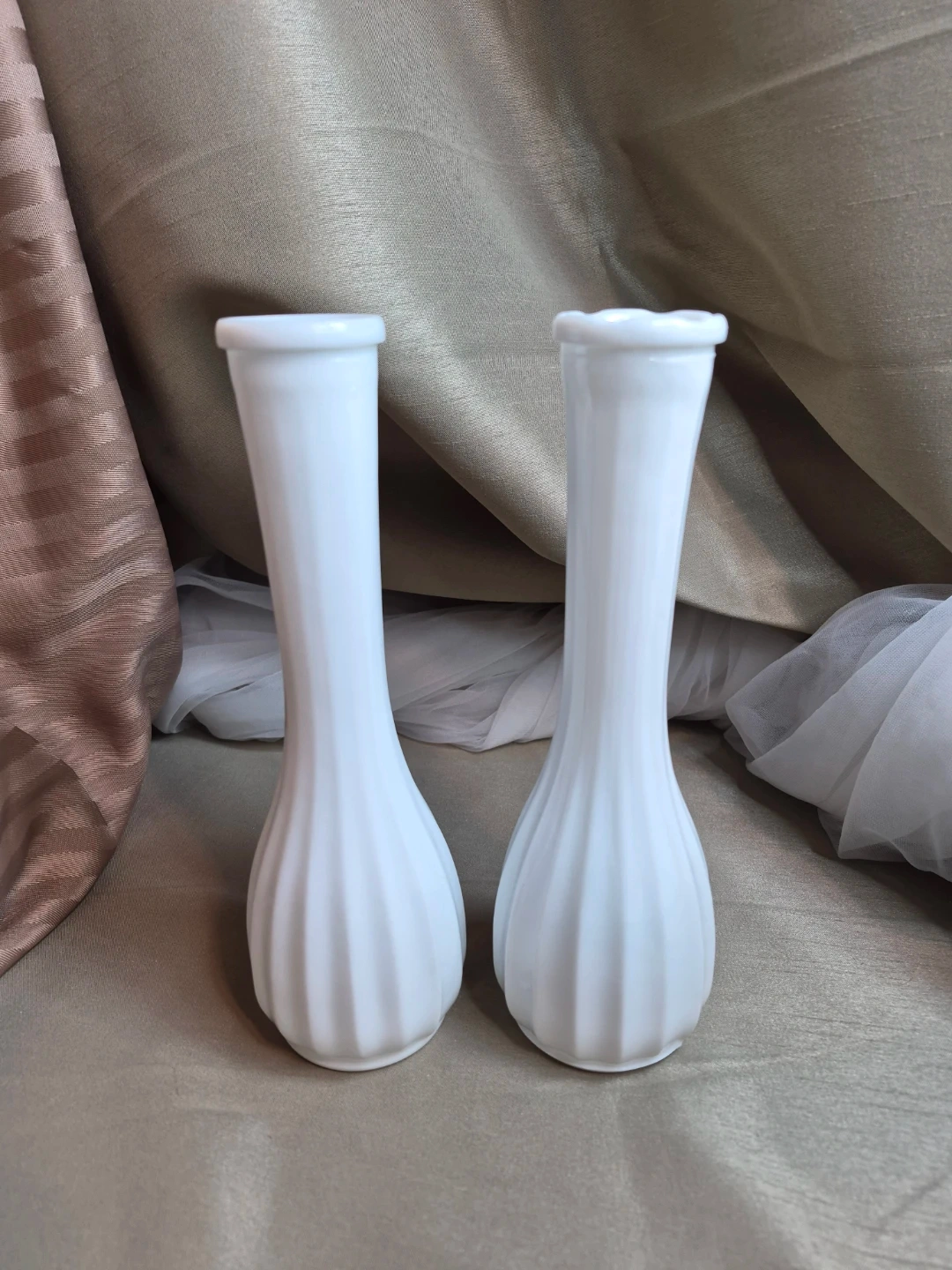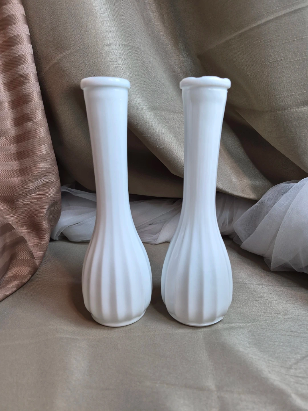 2 Beautiful 8 3/4" Tall Vintage White Milk Glass Vases - Milk Glass Vase - Tall Milk Glass Vase - Collectible Milk Glass Vase