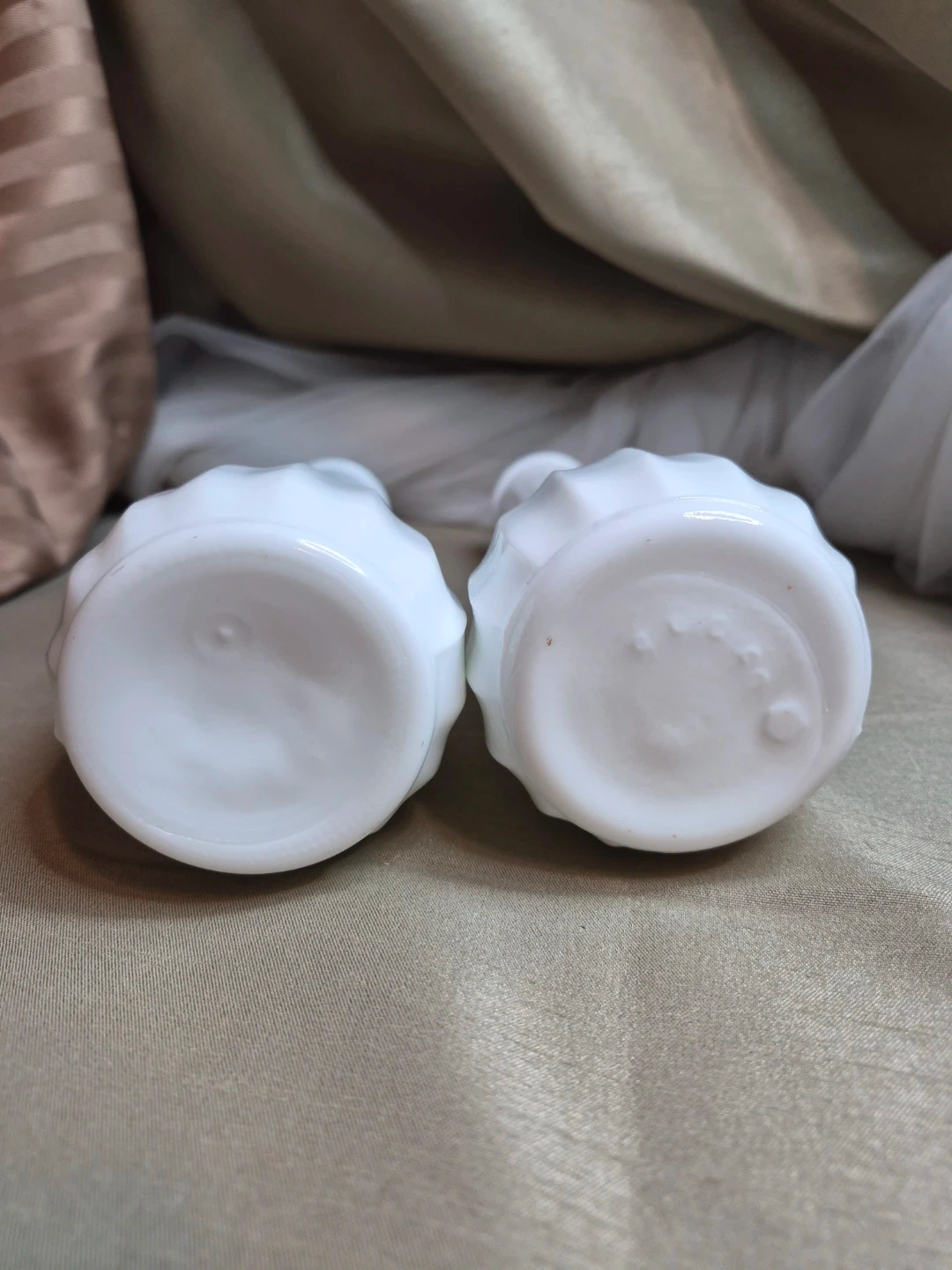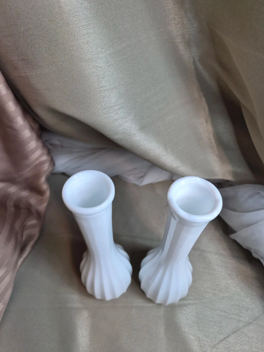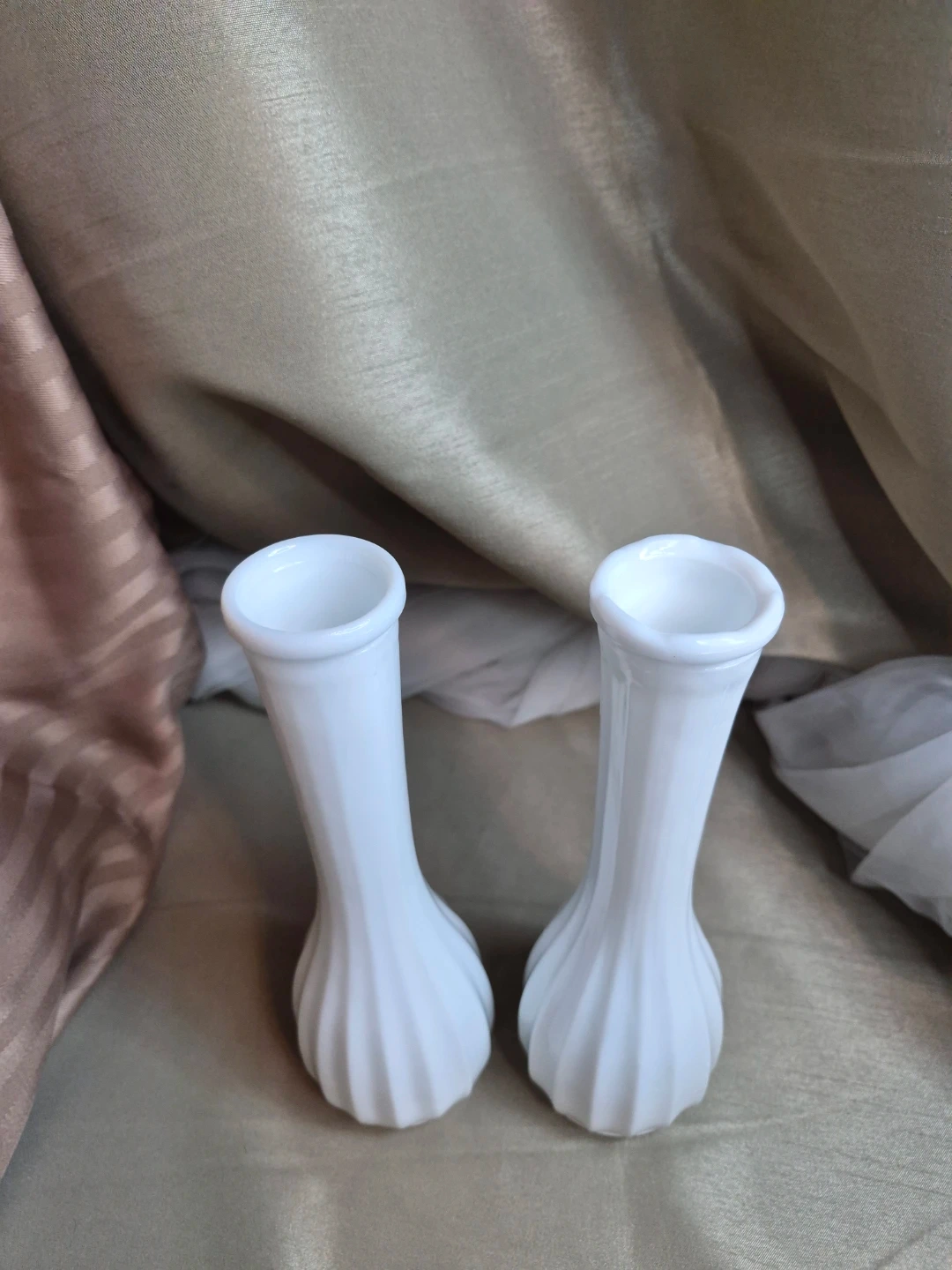 2 Beautiful 8 3/4" Tall Vintage White Milk Glass