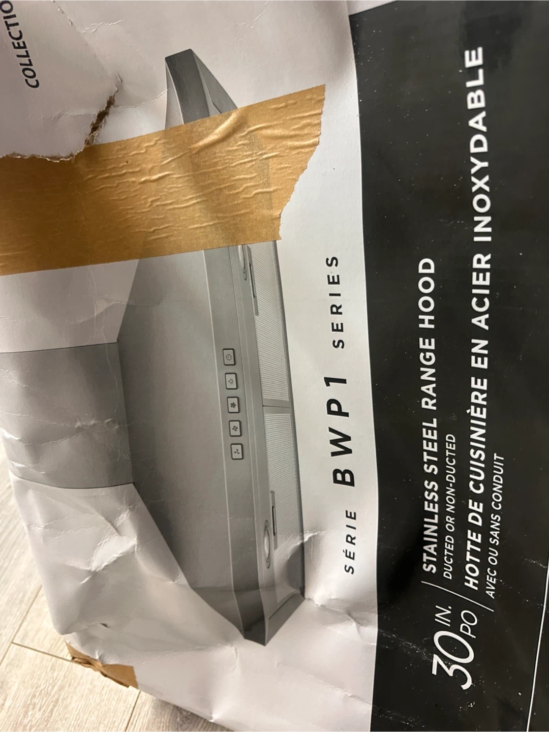Selling a Broan Designer Collection BWP1 Series stainless steel range hood. It's a 30-inch ducted or non-ducted model. Features include a 3-speed touch control, LED lighting, and two high-efficiency micro filters. It has a quiet speed setting.