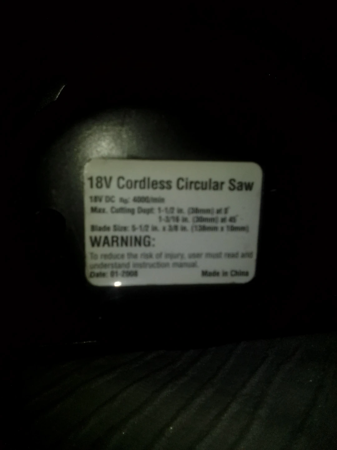 Selling an 18V cordless circular saw. It has a blade size of 5-1/2 in. x 3/8 in. (139mm x 10mm). Max cutting depth is 1-1/2 in. (38mm) at 0° and 1-3/16 in. (30mm) at 45° needs battery.