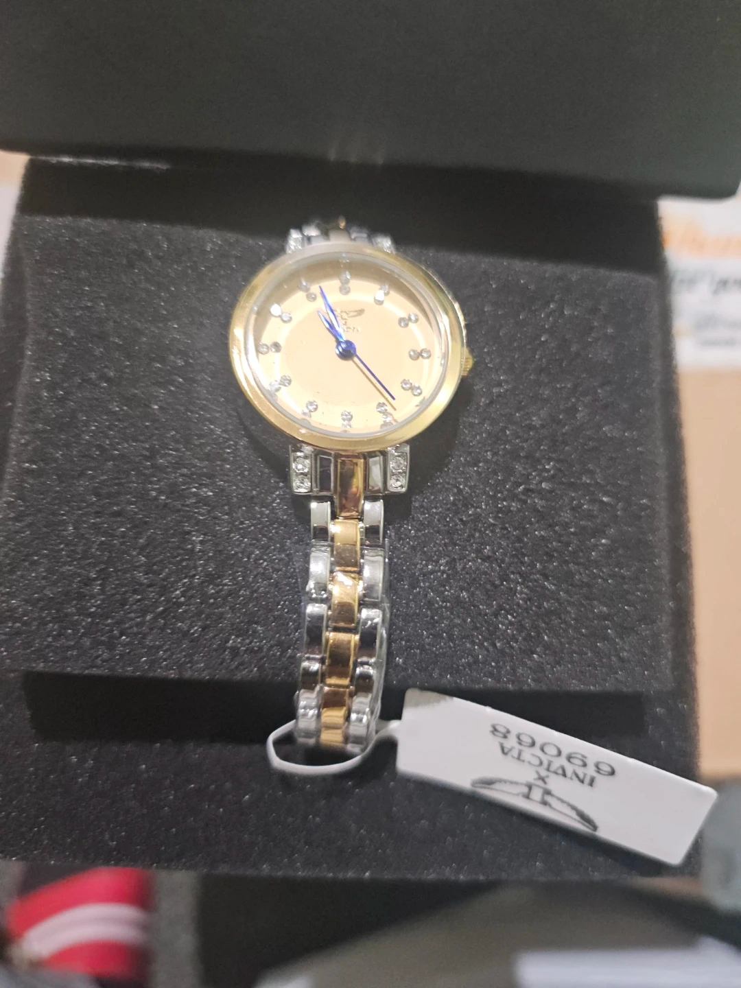 Selling an Invicta Ocean Voyage watch, model 69068. It comes with its original box. The watch features a two-tone silver and gold band with a gold face. A stylish addition to any collection!