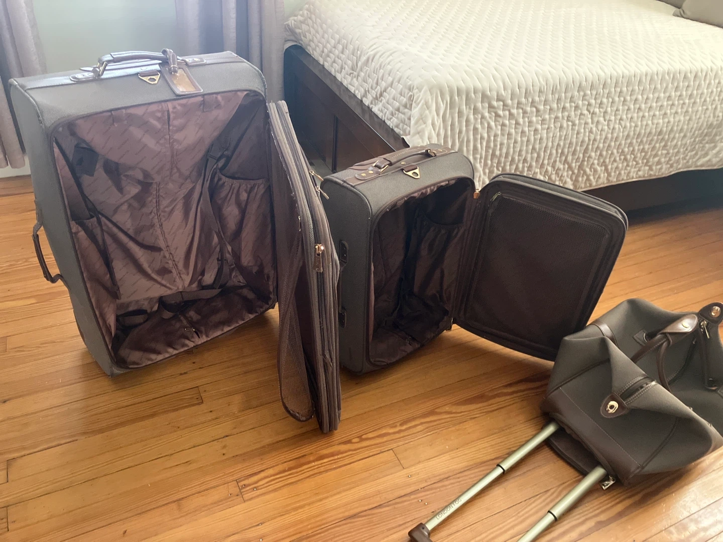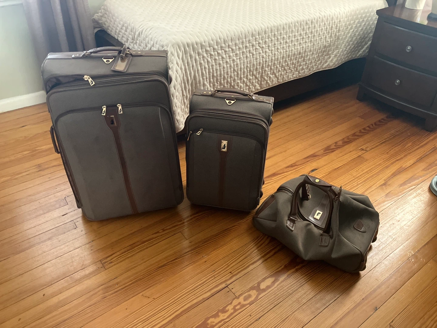 Selling a London Fog luggage set that includes three pieces. The set has a carry-on suitcase, a larger suitcase, and a duffel bag. All pieces are in good condition and ready for your next trip!