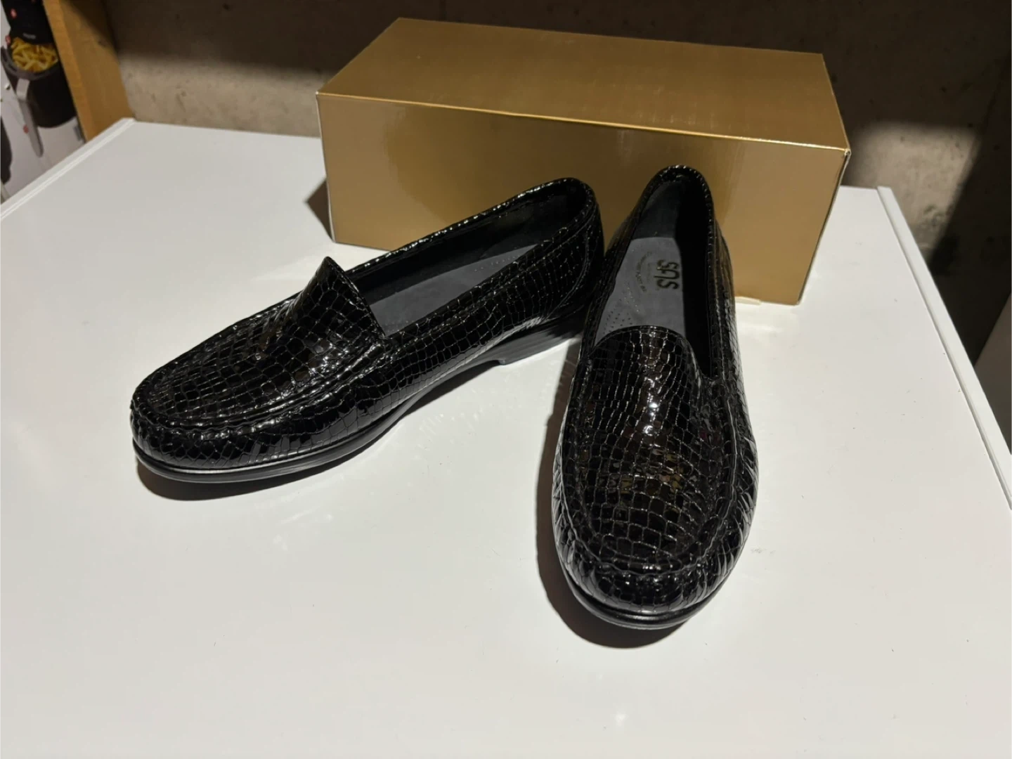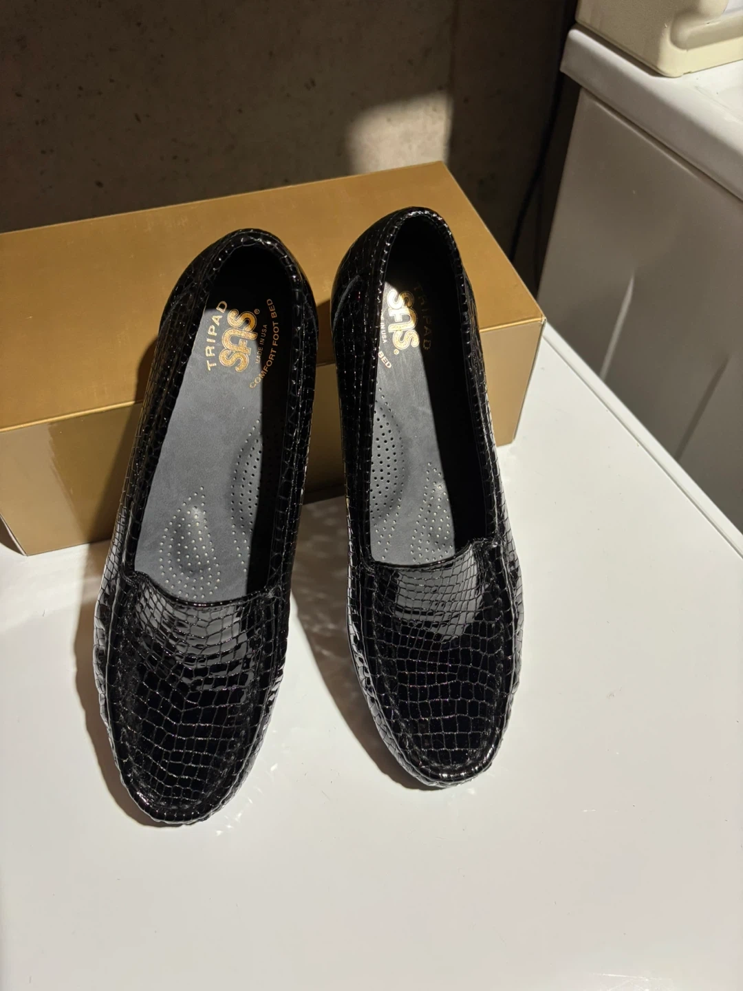 SAS Simplify Black Croc Slip-On Loafers