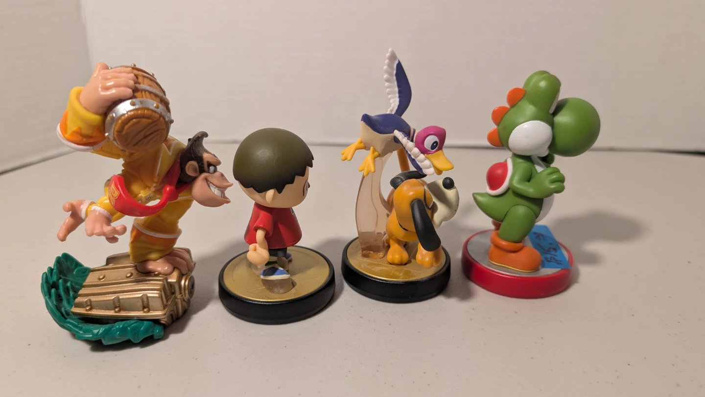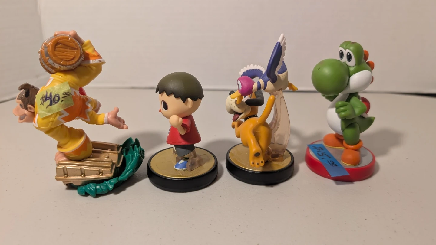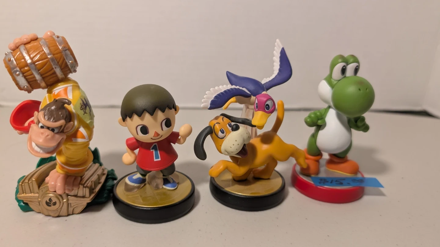 Selling a set of Amiibo figures! Included are Donkey Kong, Villager, Duck Hunt, and Yoshi. Great for collectors or fans of Nintendo games