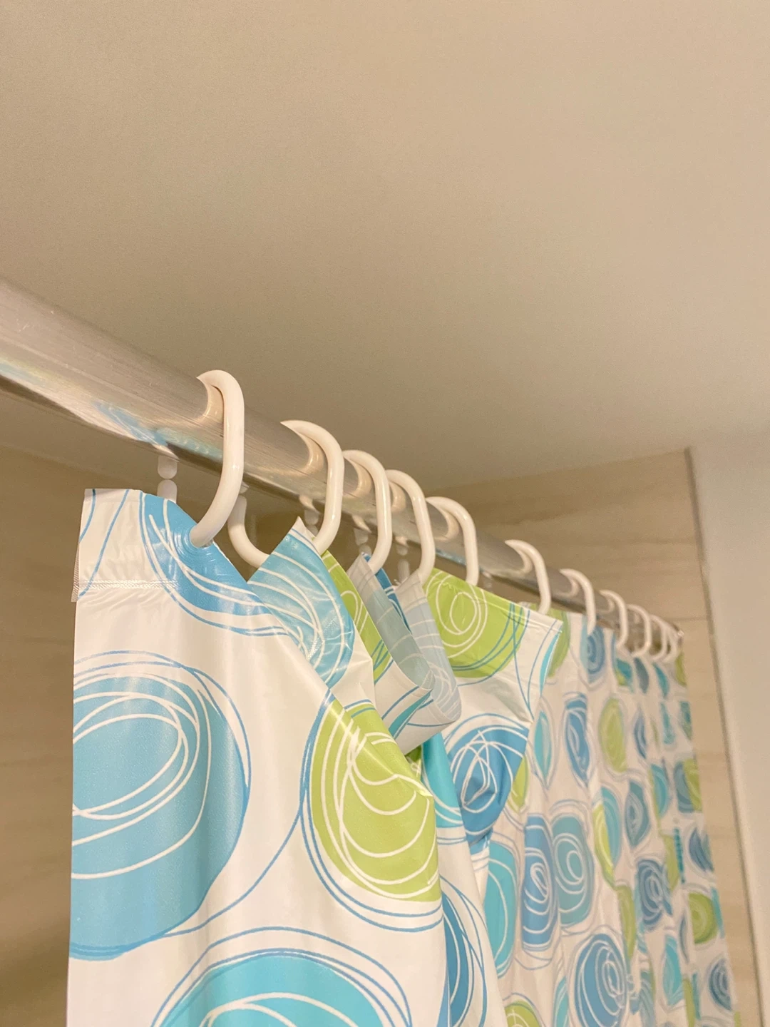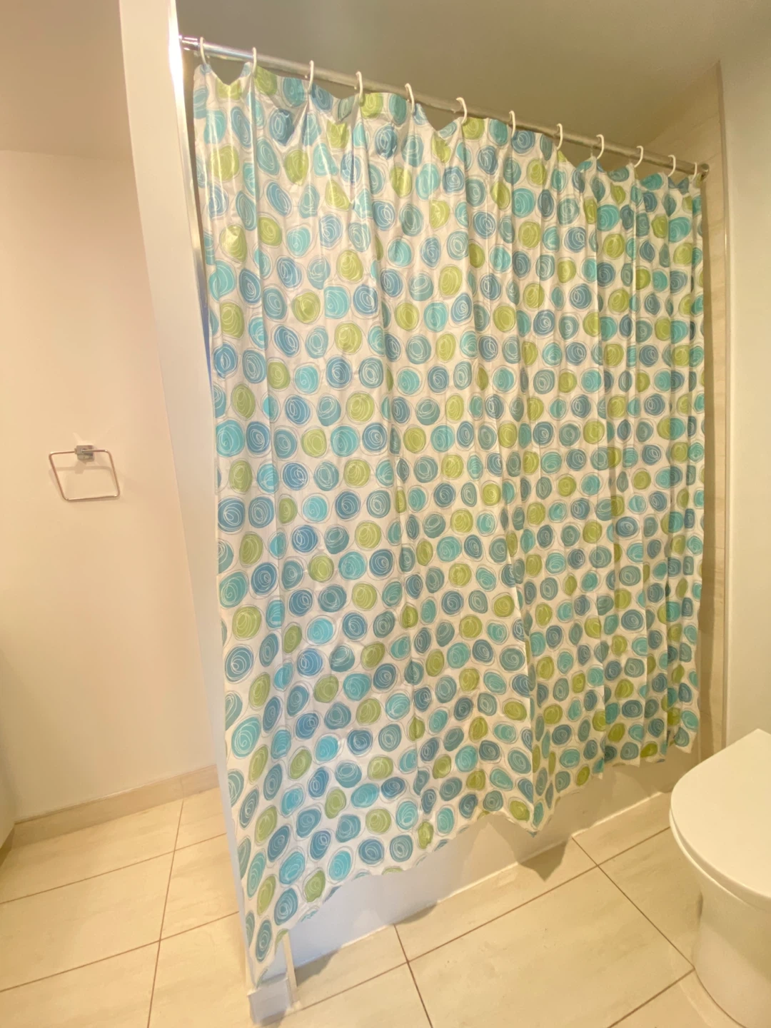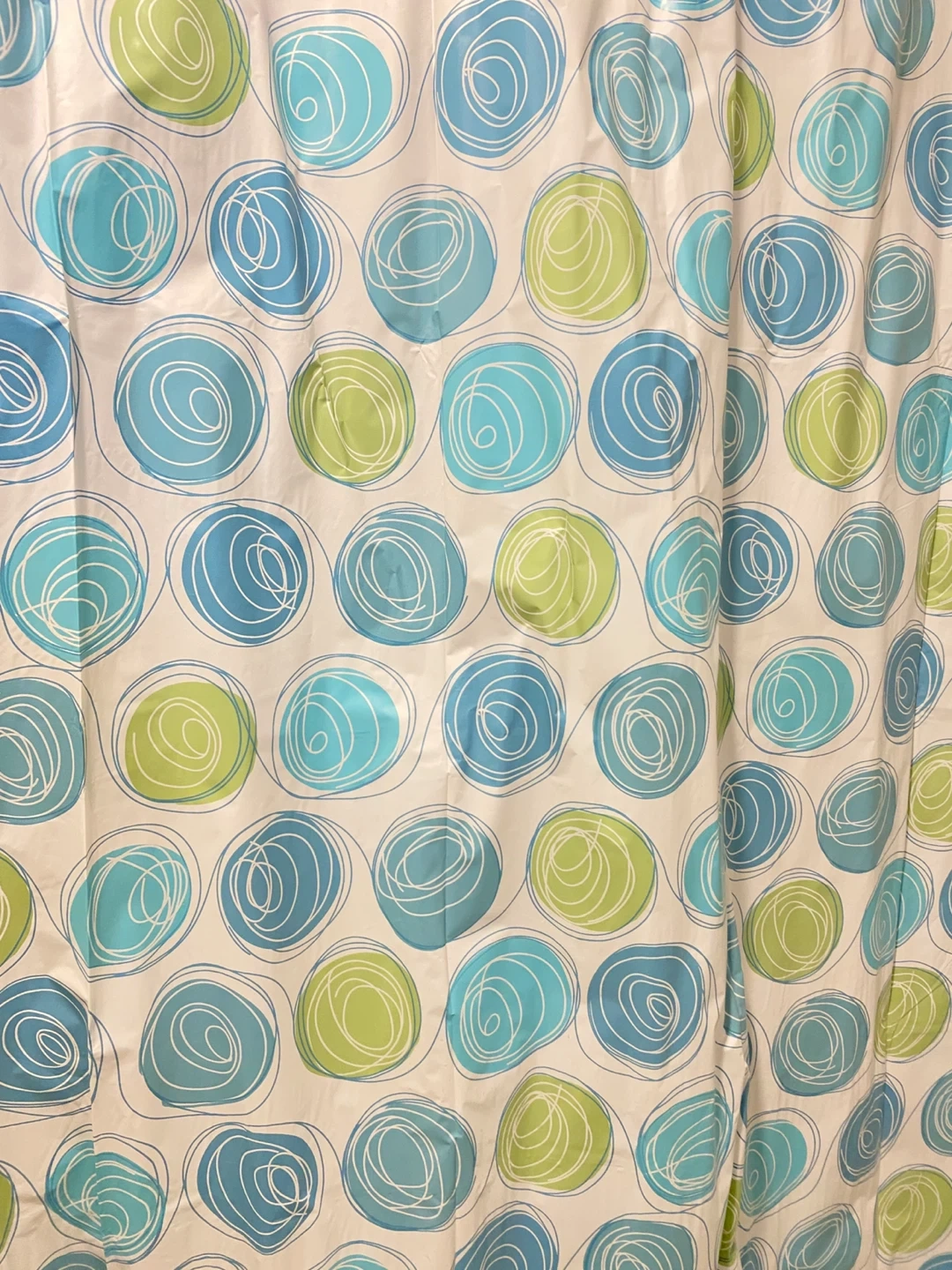 Here's a fun patterned shower curtain, featuring a playful design with blue and green circles! It's in excellent shape and ready to add a splash of colour to your bathroom. Itโ€™s long and waterproof - ensures no water spills outside, and it doesnโ€™t hold onto water therefore dries quickly. Meet up location - 2920 Highway 7 Vaughan ON L4K 0P4 ๐Ÿƒโ€โ™‚๏ธ ๐—™๐—ถ๐—ฟ๐˜€๐˜ ๐—–๐—ผ๐—บ๐—ฒ, ๐—™๐—ถ๐—ฟ๐˜€๐˜ ๐—ฆ๐—ฒ๐—ฟ๐˜ƒ๐—ฒ ๐Ÿ’ต ๐—˜๐˜…๐—ฎ๐—ฐ๐˜ ๐—–๐—ฎ๐˜€๐—ต ๐—ฃ๐—ฎ๐˜†๐—บ๐—ฒ๐—ป๐˜ ๐—ข๐—ป๐—น๐˜† โค๏ธ ๐—–๐—ต๐—ฒ๐—ฐ๐—ธ ๐—ผ๐˜‚๐˜ ๐—บ๐˜† ๐—ผ๐˜๐—ต๐—ฒ๐—ฟ ๐—น๐—ถ๐˜€๐˜๐—ถ๐—ป๐—ด๐˜€ ๐—ณ๐—ผ๐—ฟ ๐—ด๐—ฟ๐—ฒ๐—ฎ๐˜ ๐—ฑ๐—ฒ๐—ฎ๐—น๐˜€!