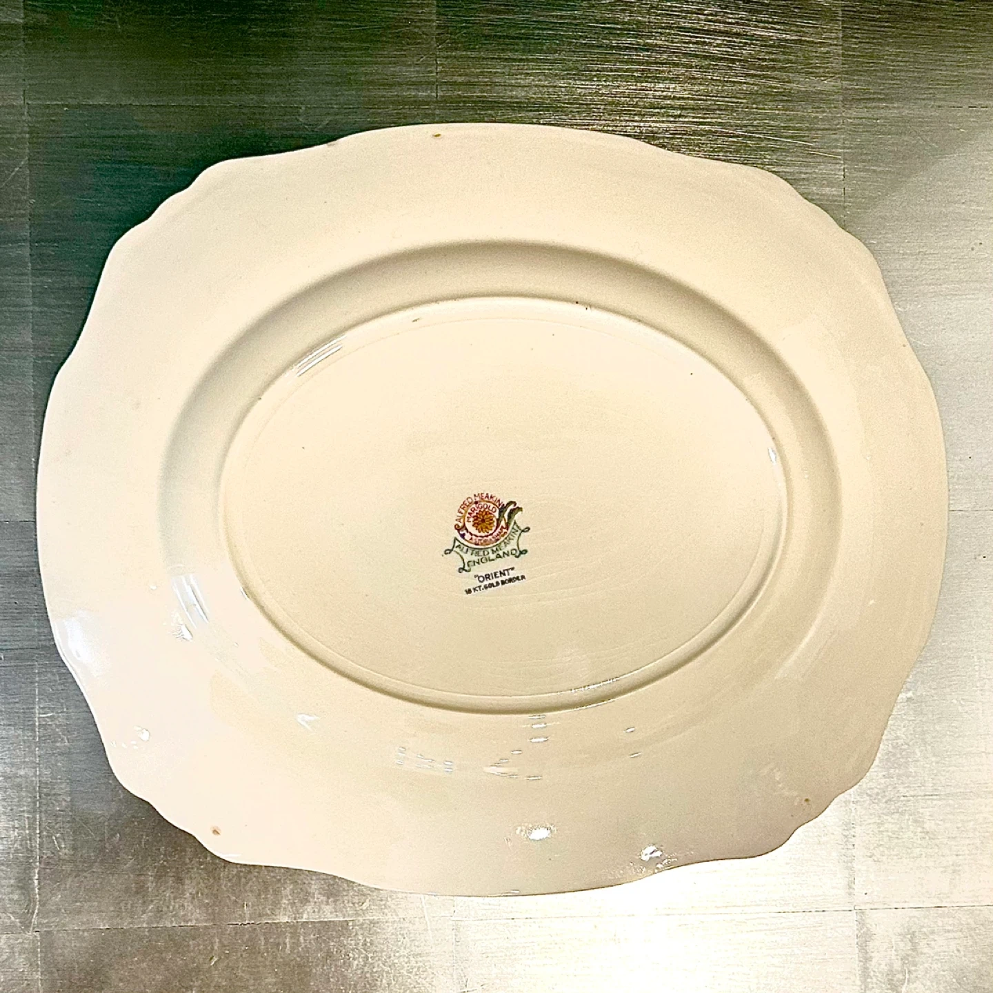 Offered here is an authentic Alfred Meakin Ltd. oval serving platter in the highly collectible “Orient” pattern, produced in England circa 1910s–1920s, during the firm’s peak export period.