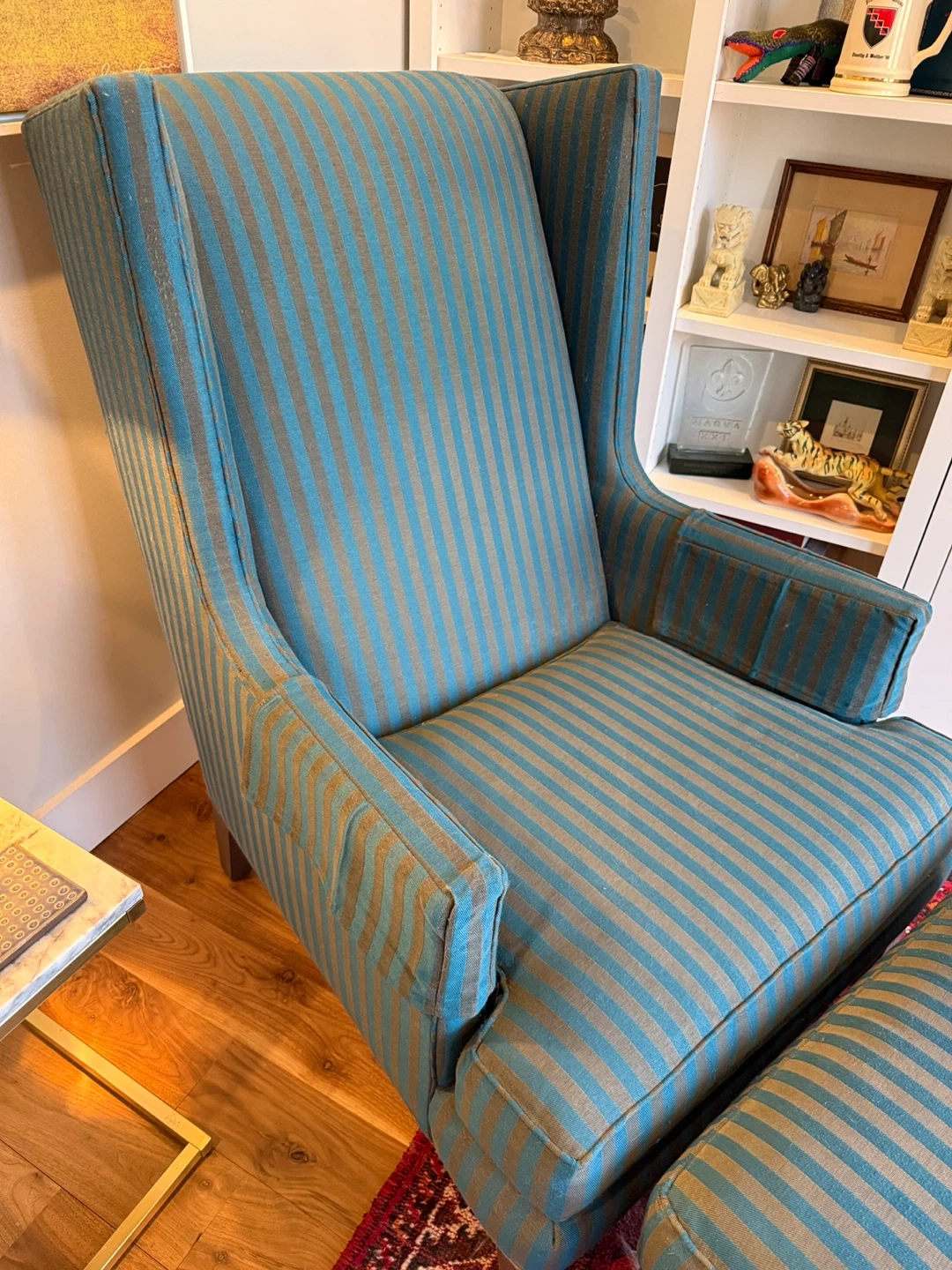 Buy & SellStriped Wingback Chair with OttomanStriped Wingback Chair with Ottoman$150Custom Crate & Barrel striped wingback chair with matching ottoman. There is some minor cat wear and tear on the back of the chair.ConditionGoodWHERE TO MEETBed-StuyView MapSELLERverifiedBarryBedford-Stuyvesant1487 reviews0 chats·0 favorites·18 viewsSEND CHAT TO SELLERHi Barry! I’m interested in your listing.Hi Barry! I’m interested in your listing.Get the Karrot app to chatSign In to chat