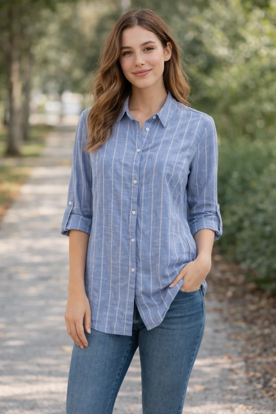 Striped Blue Button-Down Shirt 100% cotton- Size small