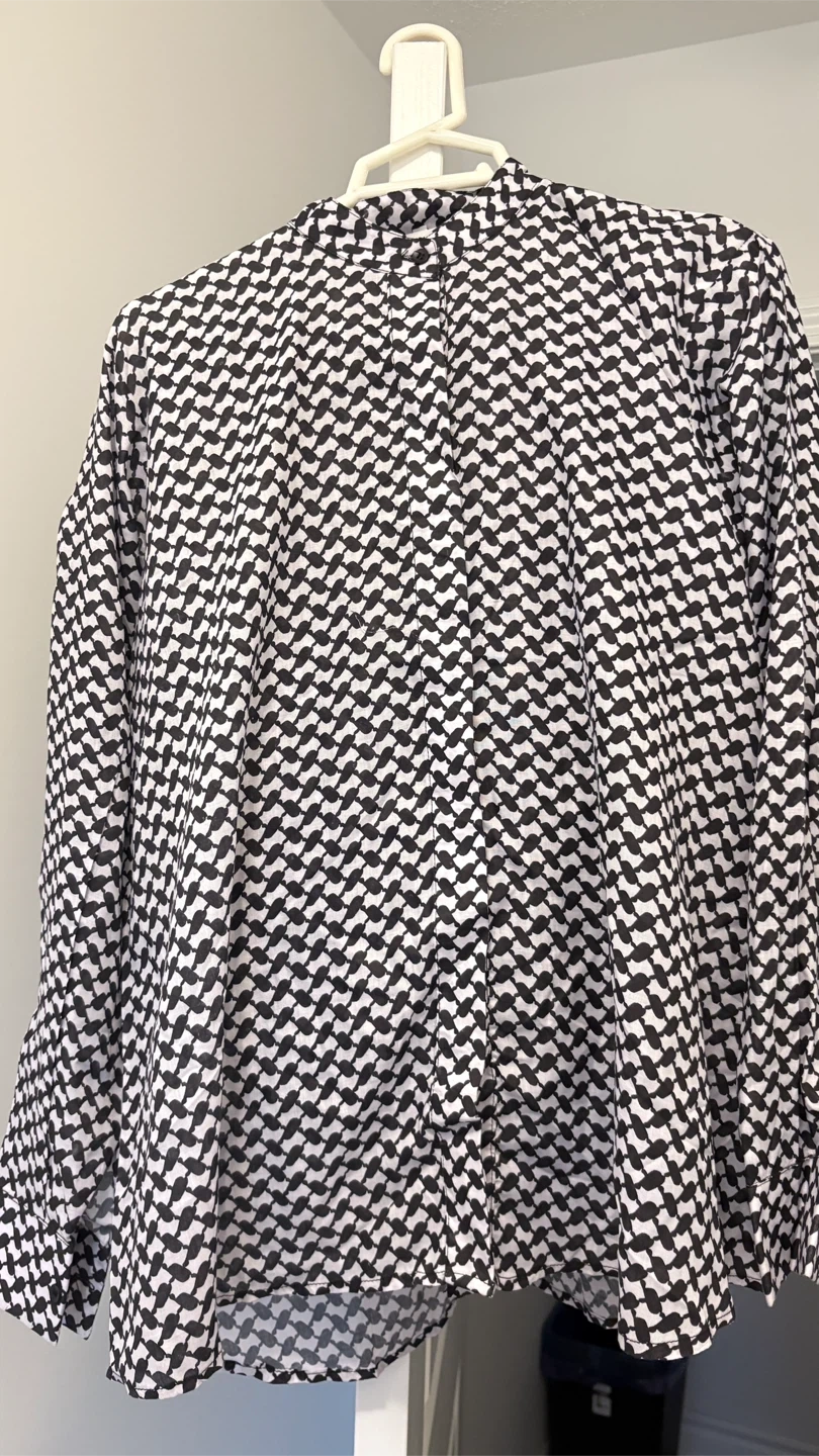 Here's a stylish black patterned matching set! It's perfect for lounging at home or a casual day out. The set includes a long-sleeved top and comfortable pants with an elastic waistband. The material is soft and breathable, making it ideal for year-round wear