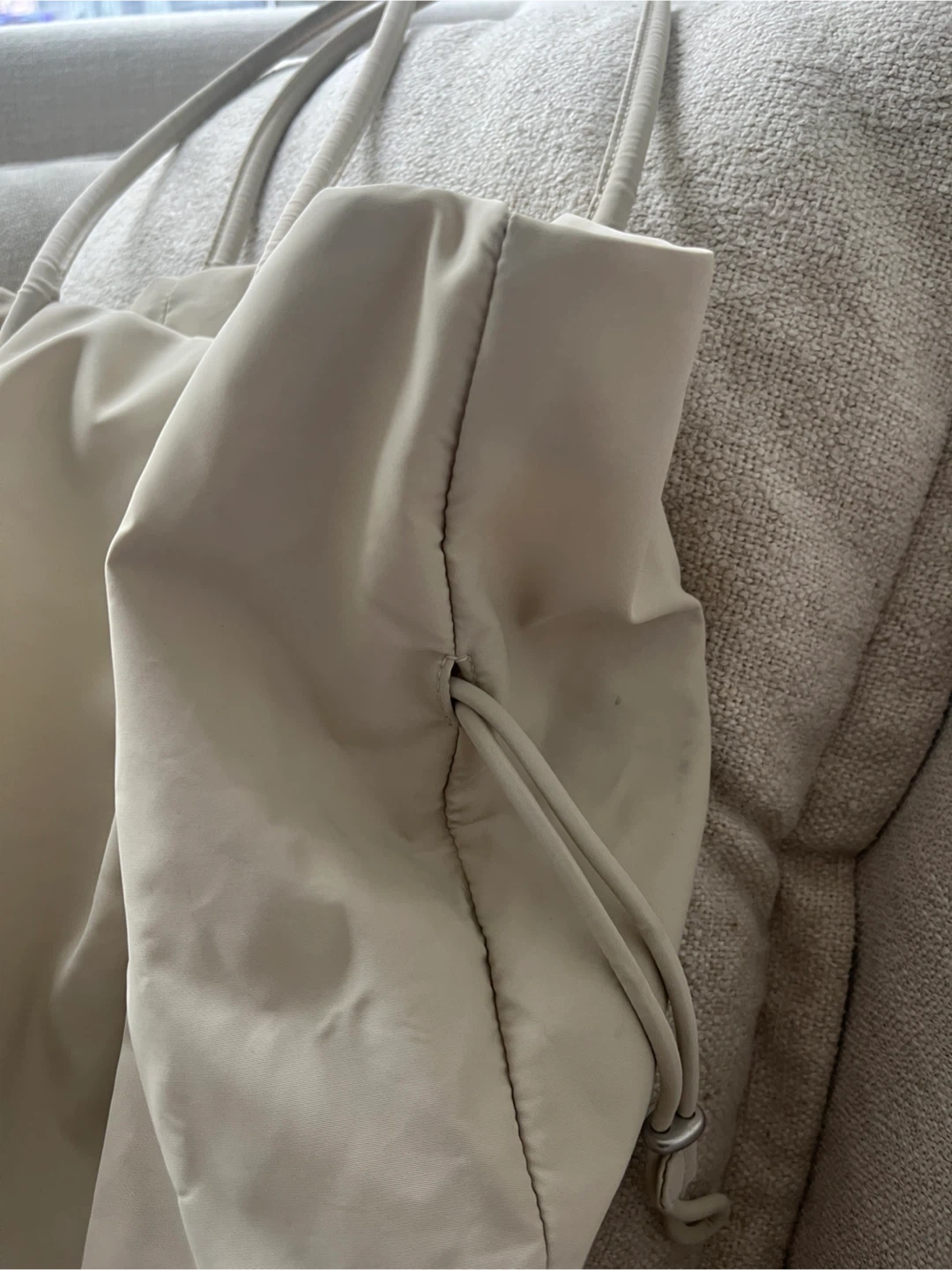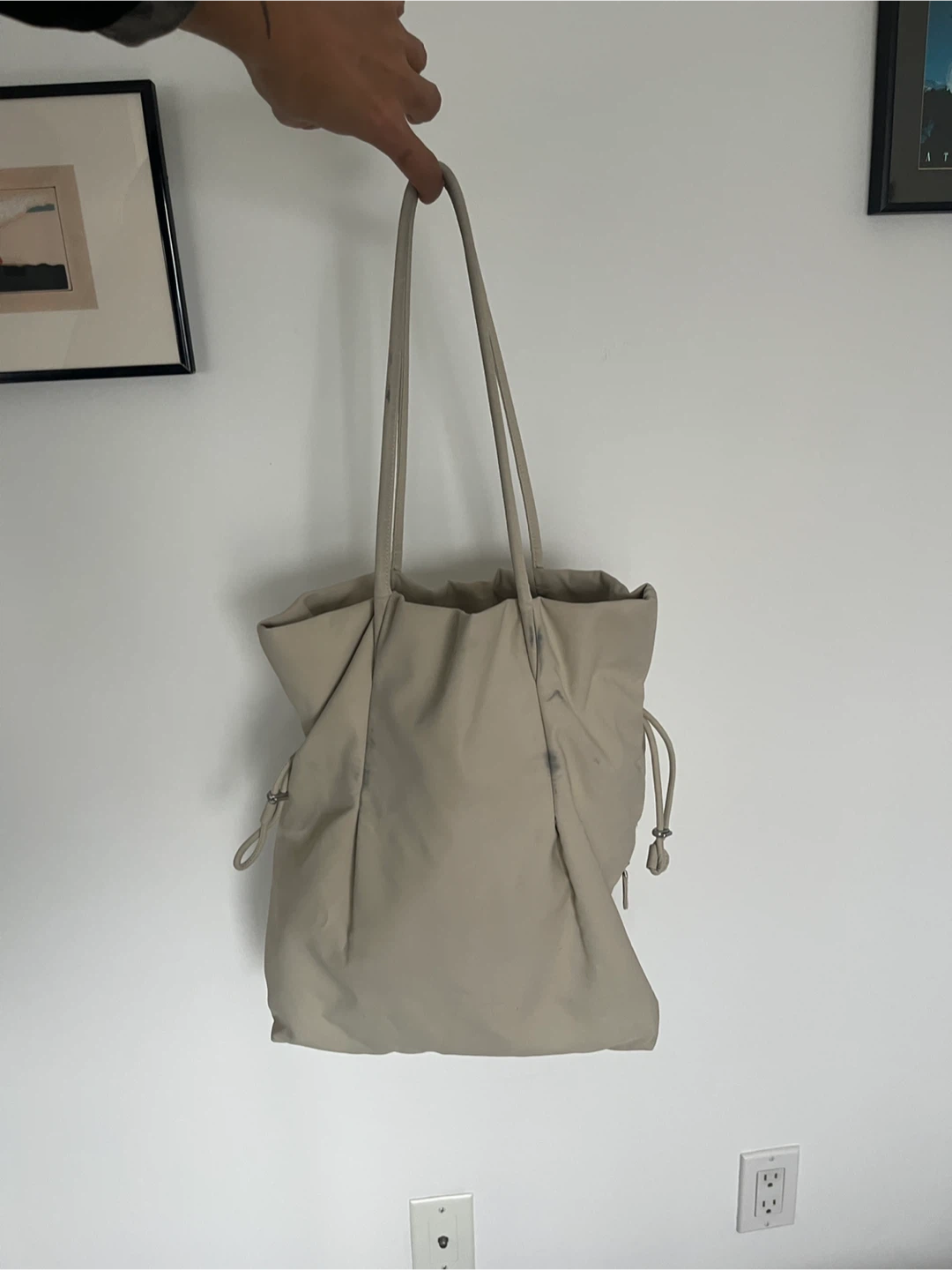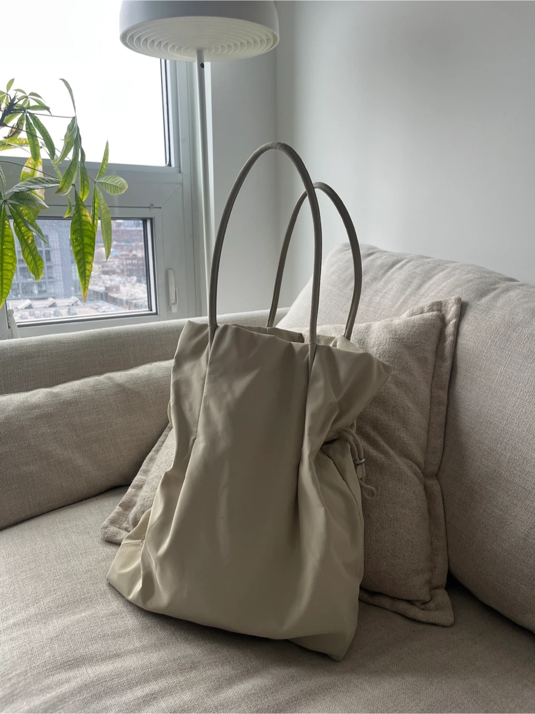 Selling a gently used Aritzia Babaton Commute Tote Bag in an off-white cream colour! It's in great condition and perfect for everyday use. This bag is super stylish and practical for carrying all your essentials and the price reflect minor black scuff marks on one side which doesn’t affect functionality.