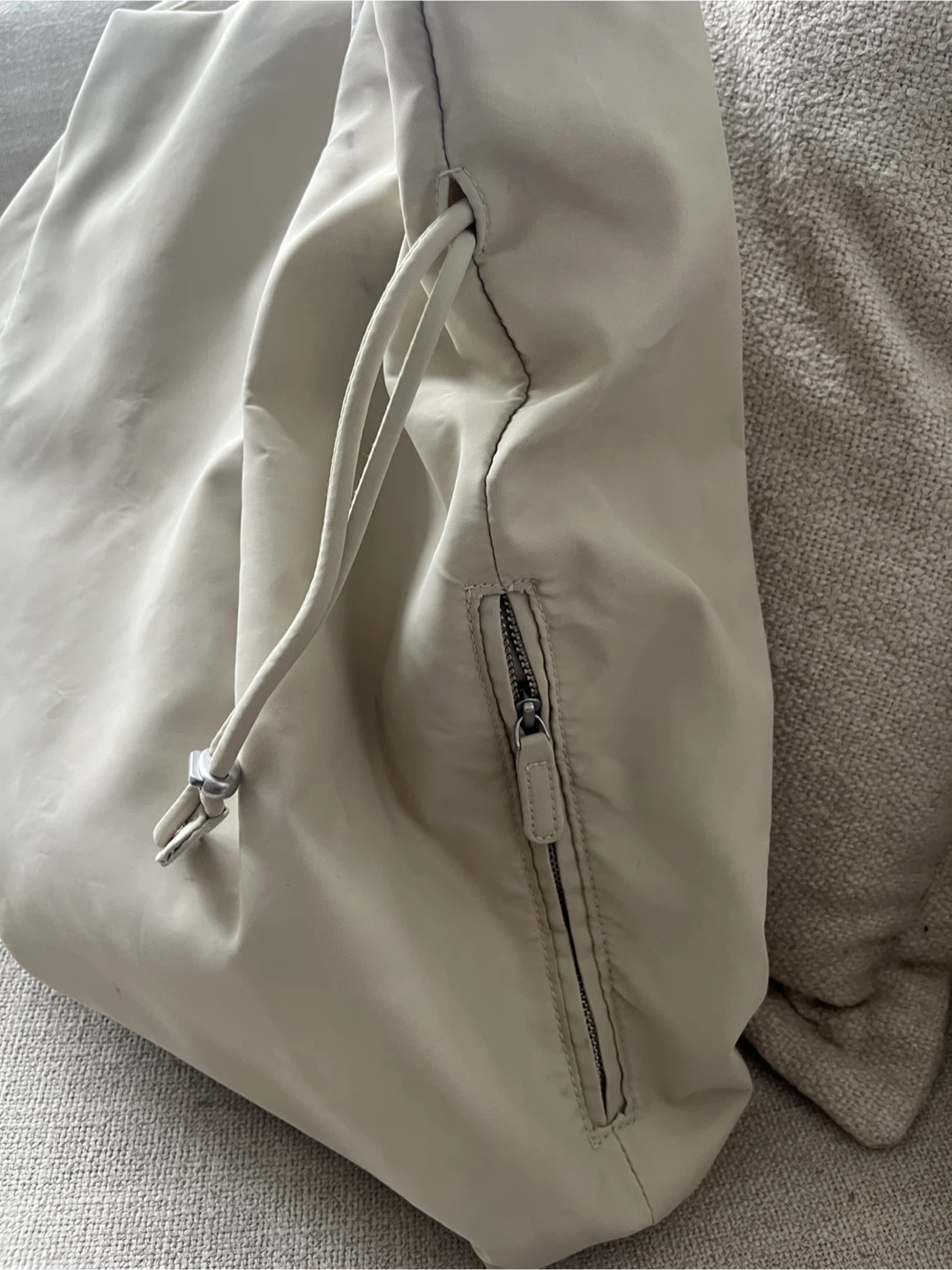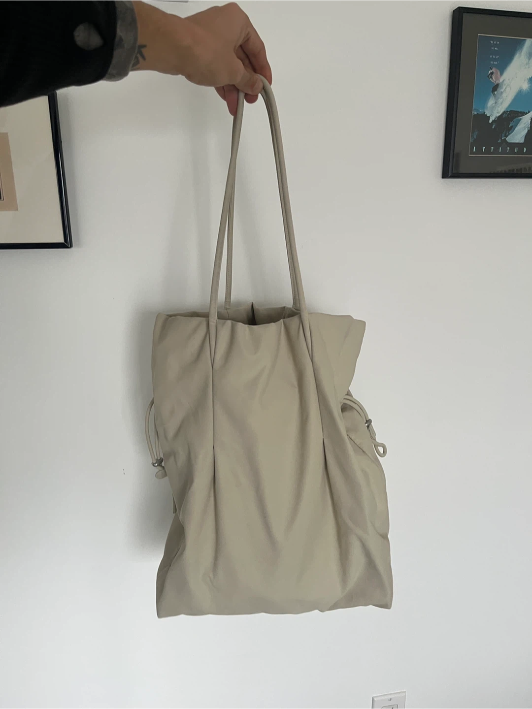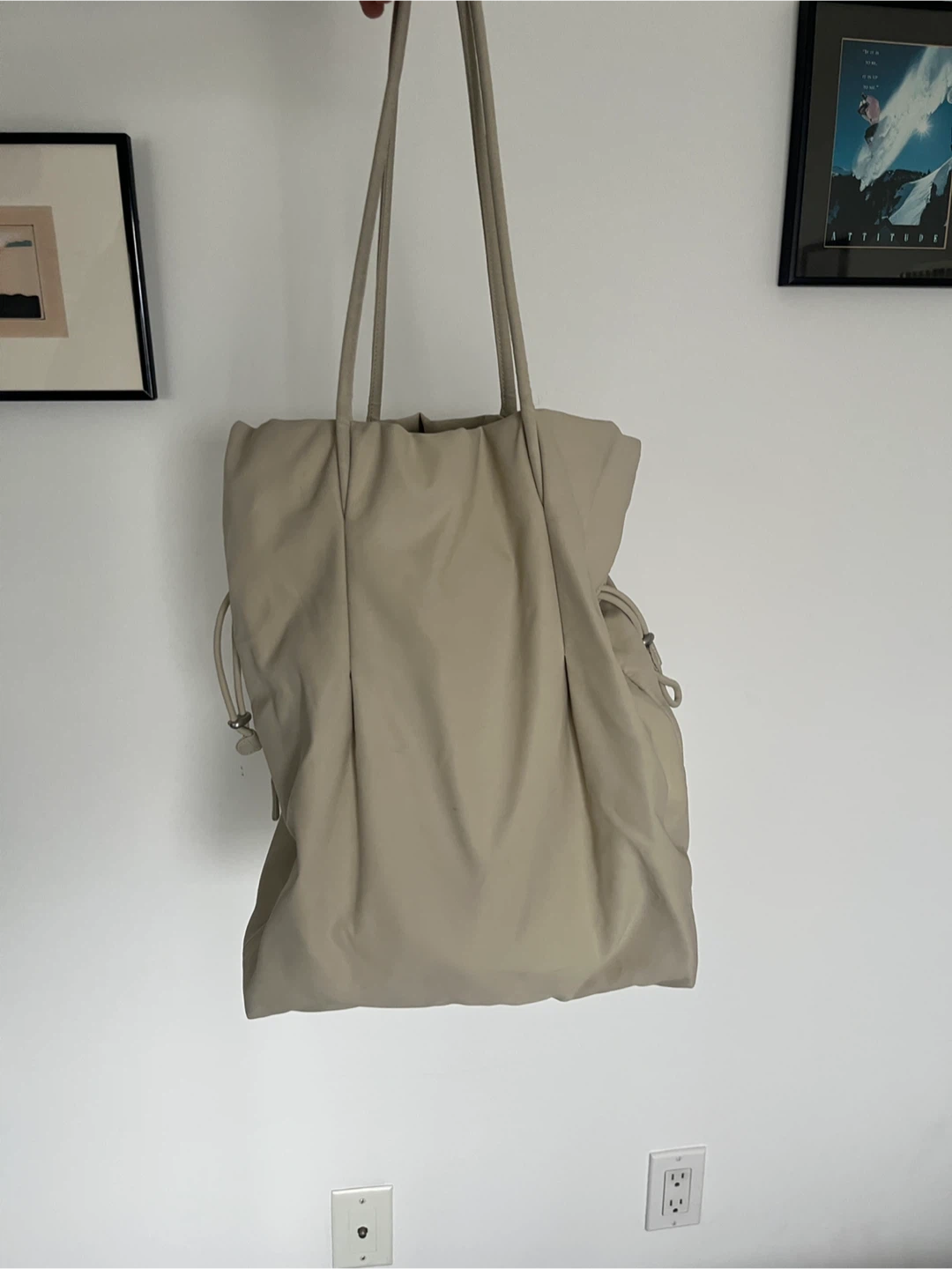 Selling a gently used Aritzia Babaton Commute Tote Bag in an off-white cream colour! It's in great condition and perfect for everyday use. This bag is super stylish and practical for carrying all your essentials and the price reflect minor black scuff marks on one side which doesn’t affect functionality.