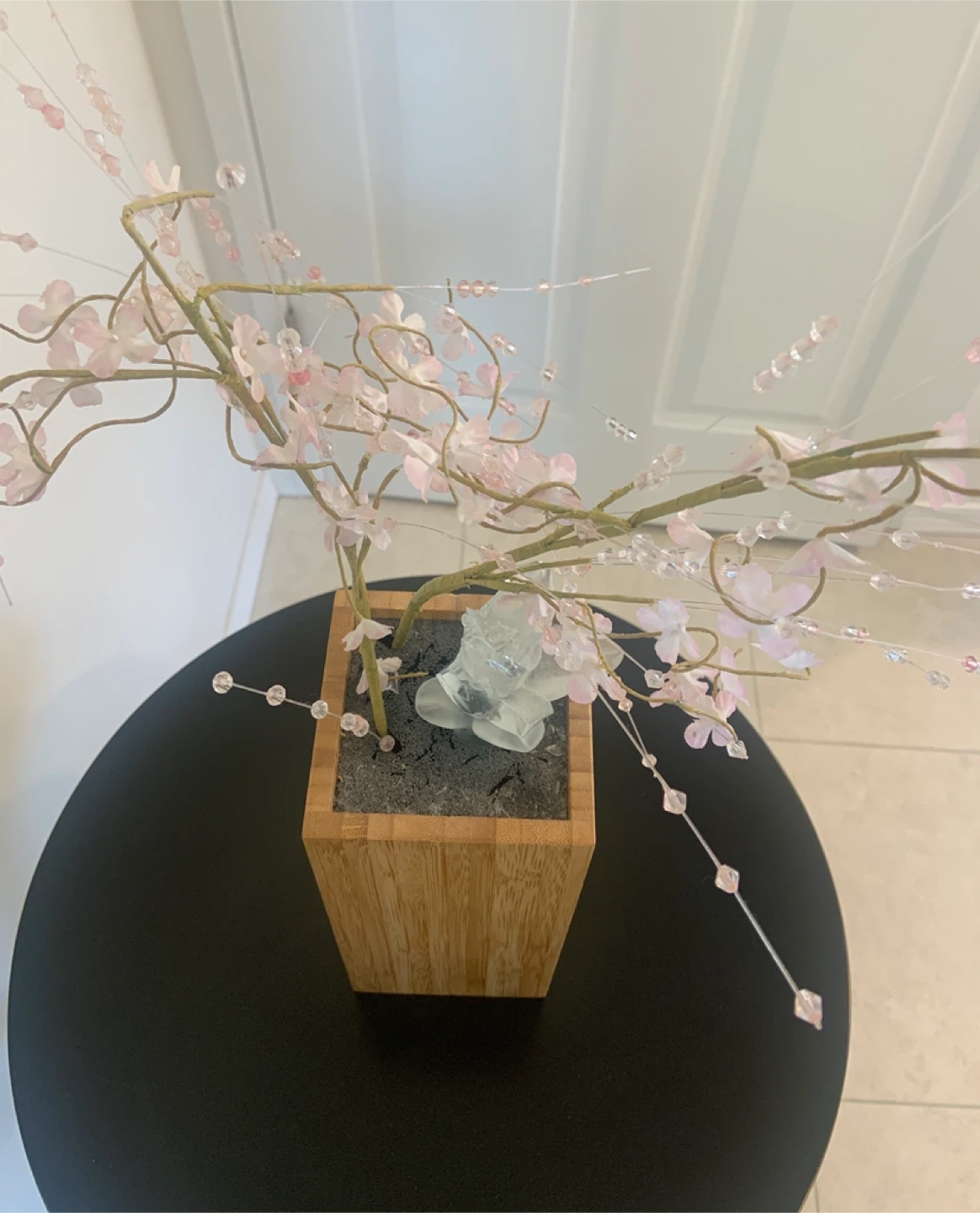 Add a touch of spring to your home with this delicate artificial cherry blossom arrangement! The blossoms are a soft pink and the arrangement comes in a light wood-look pot. It's perfect for adding a bit of cheer to any room