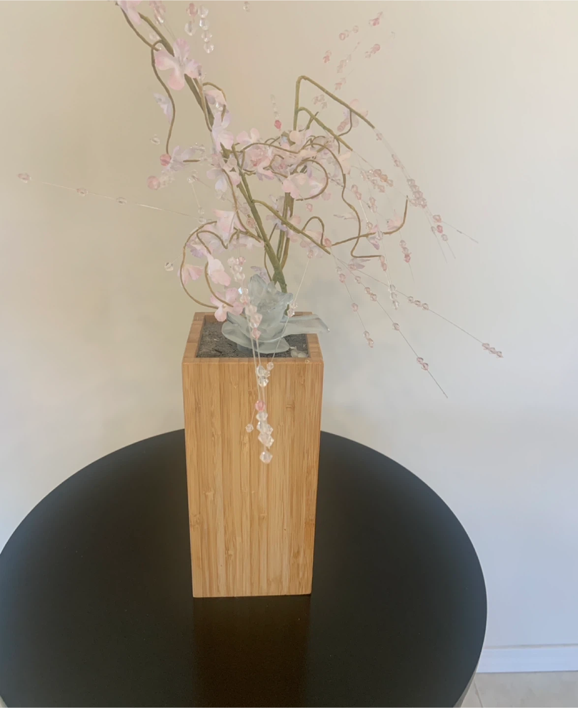 Add a touch of spring to your home with this delicate artificial cherry blossom arrangement! The blossoms are a soft pink and the arrangement comes in a light wood-look pot. It's perfect for adding a bit of cheer to any room