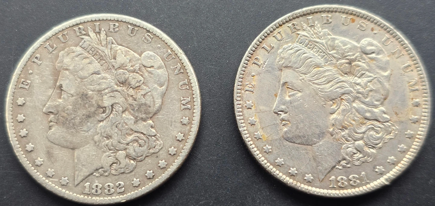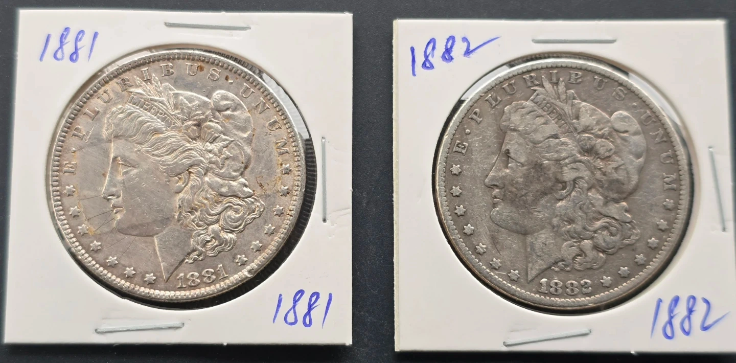 1881 & 1882 Morgan 90% Silver $$ US (2) Coin Lot!!!