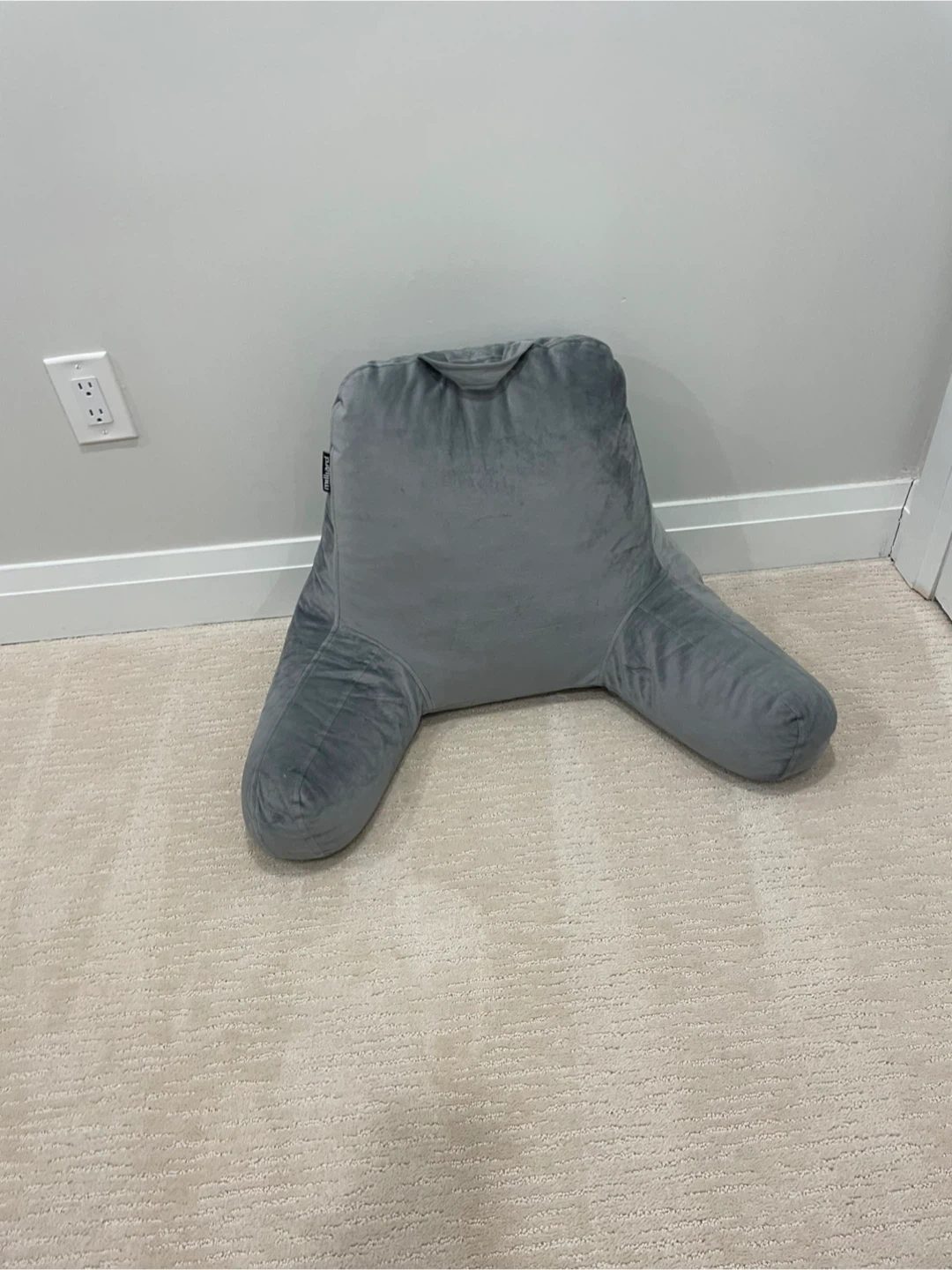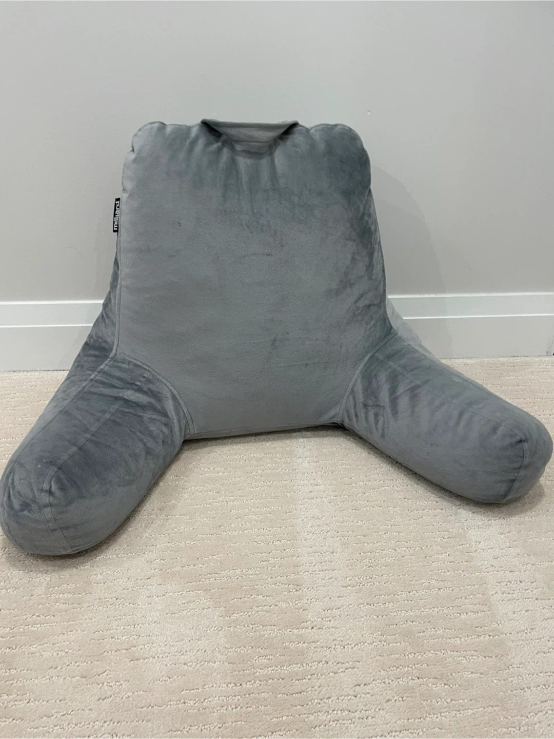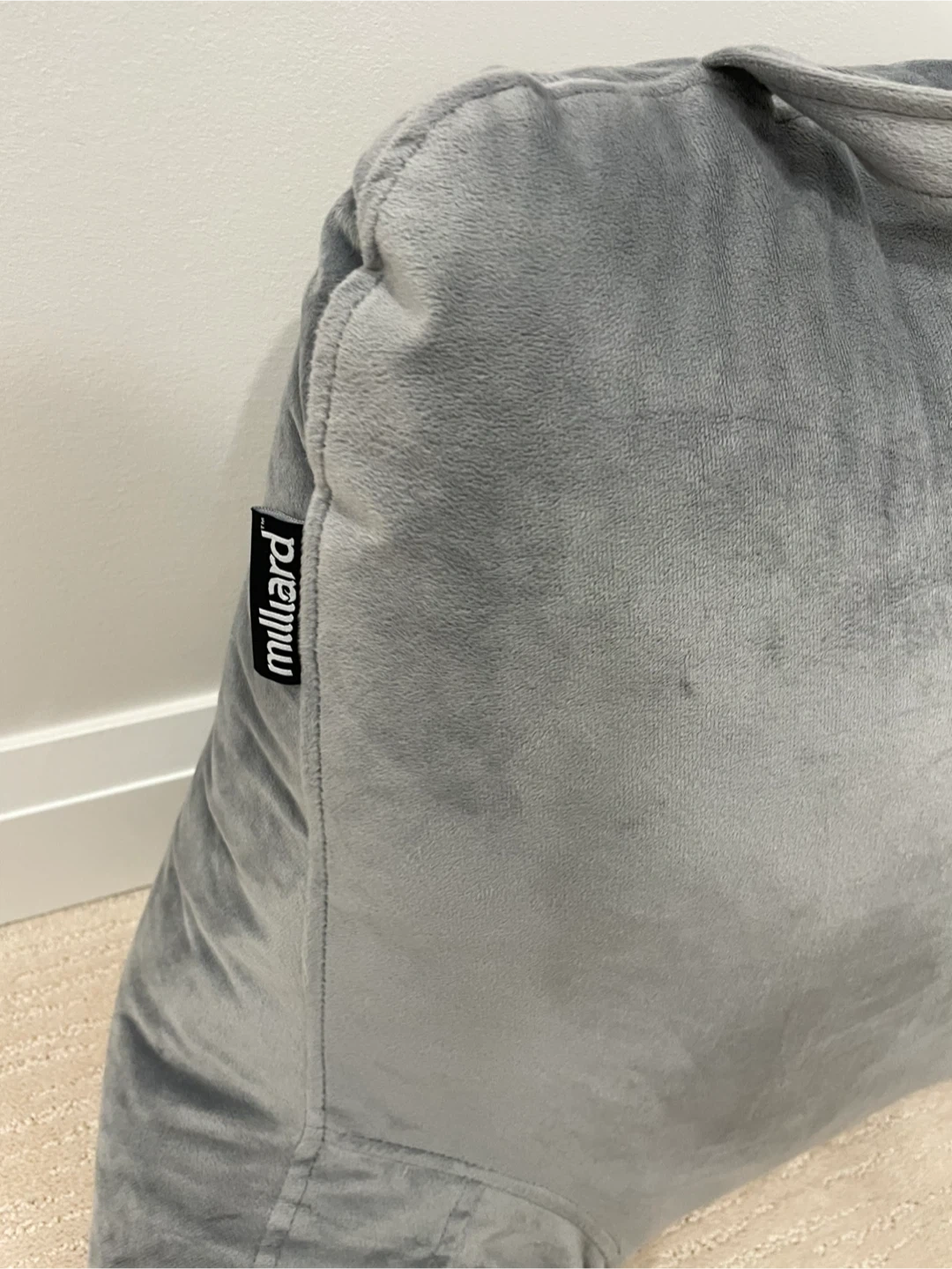Cozy up with this Milliard reading pillow! It's a grey, plush pillow that's perfect for reading in bed or on the couch. It's in great condition and ready for a new home!