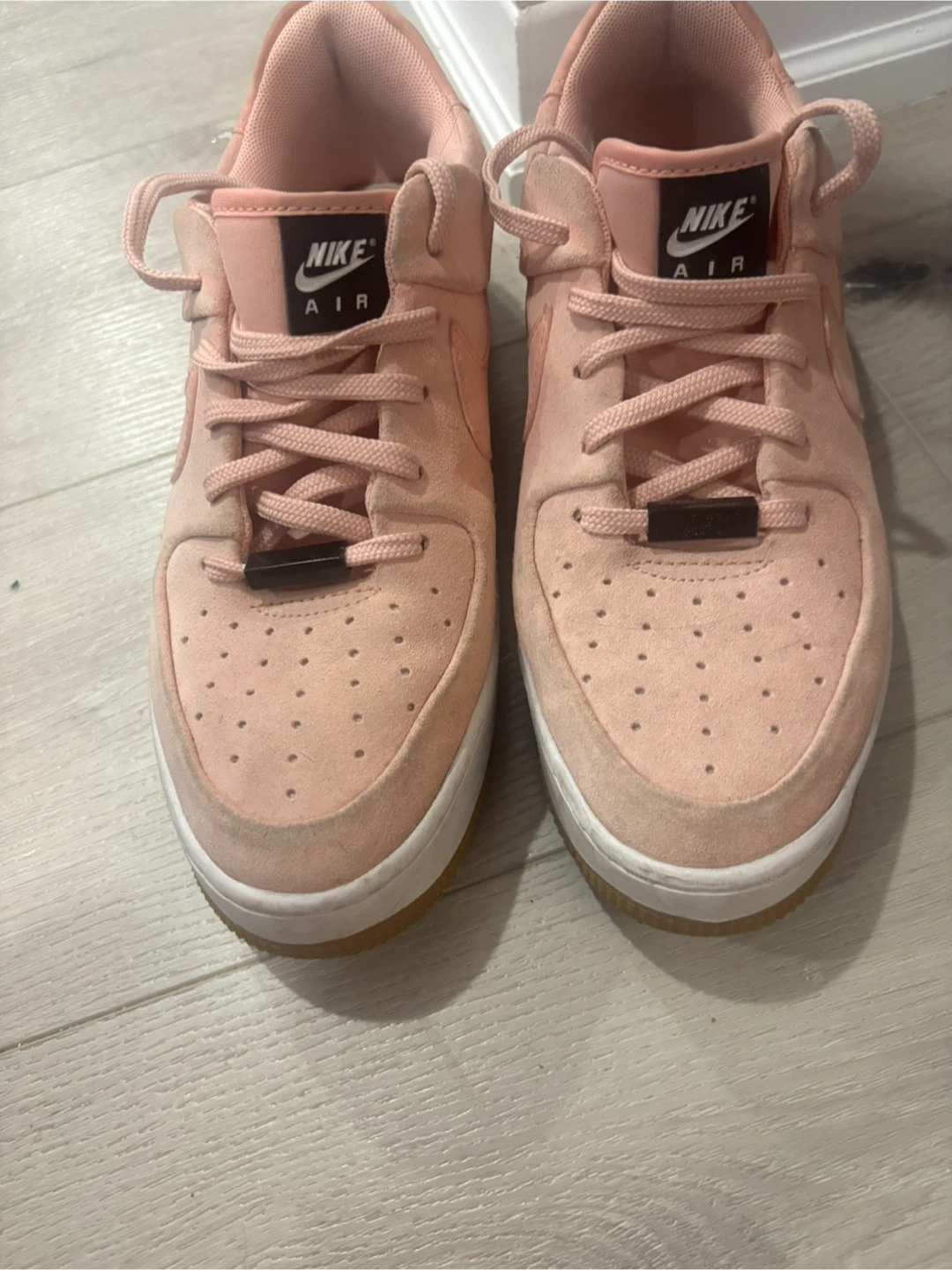 Selling a pair of Nike Air Force 1 Sage Low sneakers in a lovely pink colour! They're in great shape and ready for a new adventure. The size is US 8.5, These are super stylish and comfy!