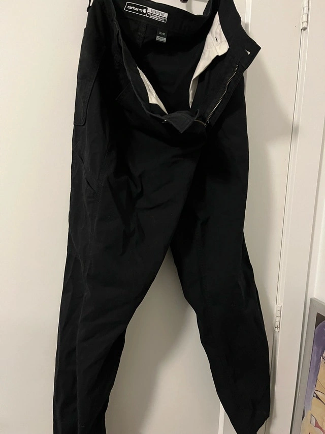 I'm selling these used Carhartt pants, size 33x32 in black, perfect for work or casual wear. They've been my go-to for a while, showing some wear but still have plenty of life left.