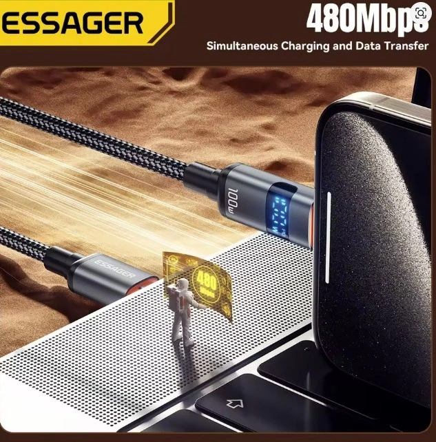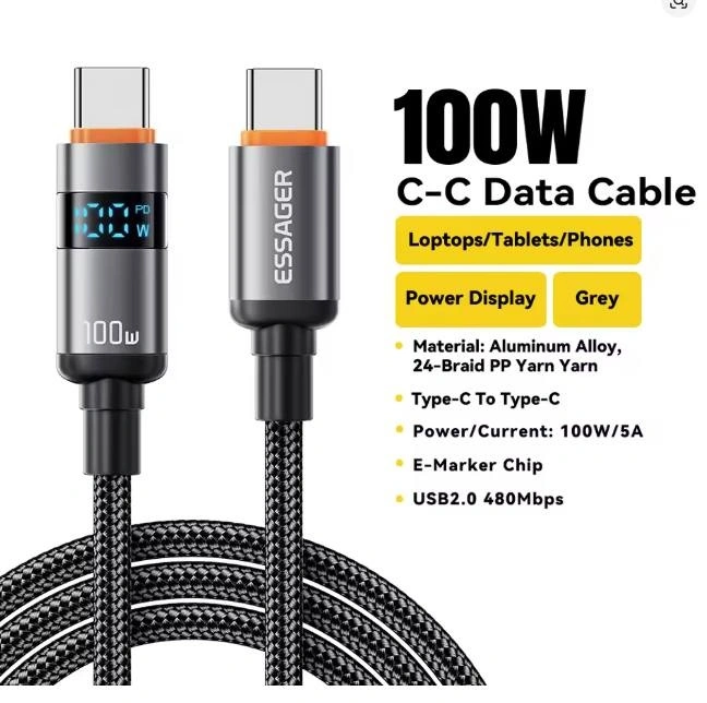 USB Type C to USB C Cable with Digital Display for 100W Fast Charging. For iPhone, Samsung, Macbook, iPad, Laptop, phone, tablet chargers.