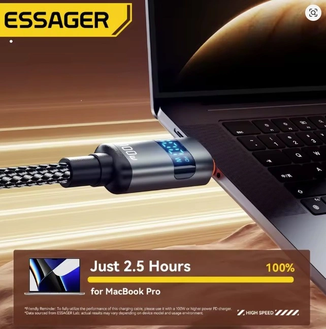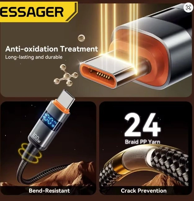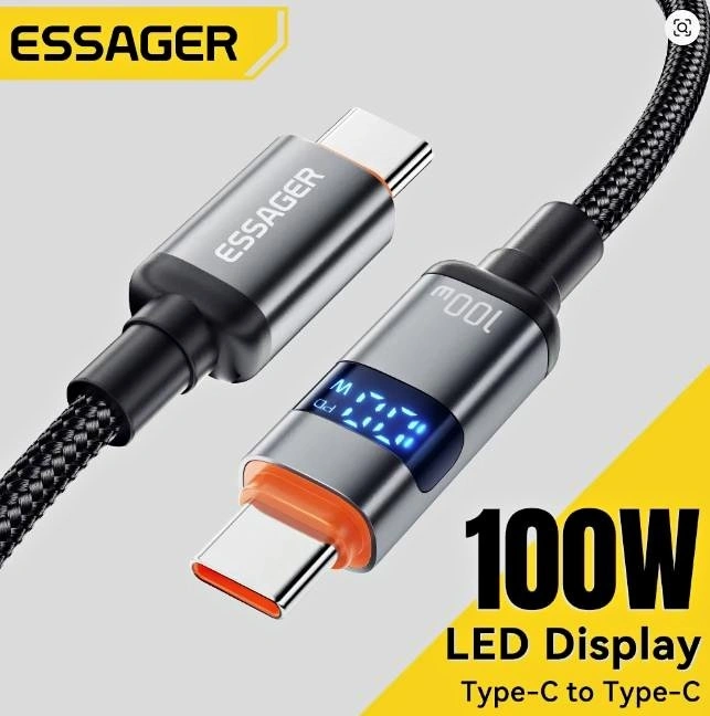 USB Type C to USB C Cable with Digital Display for 100W Fast Charging. For iPhone, Samsung, Macbook, iPad, Laptop, phone, tablet chargers.