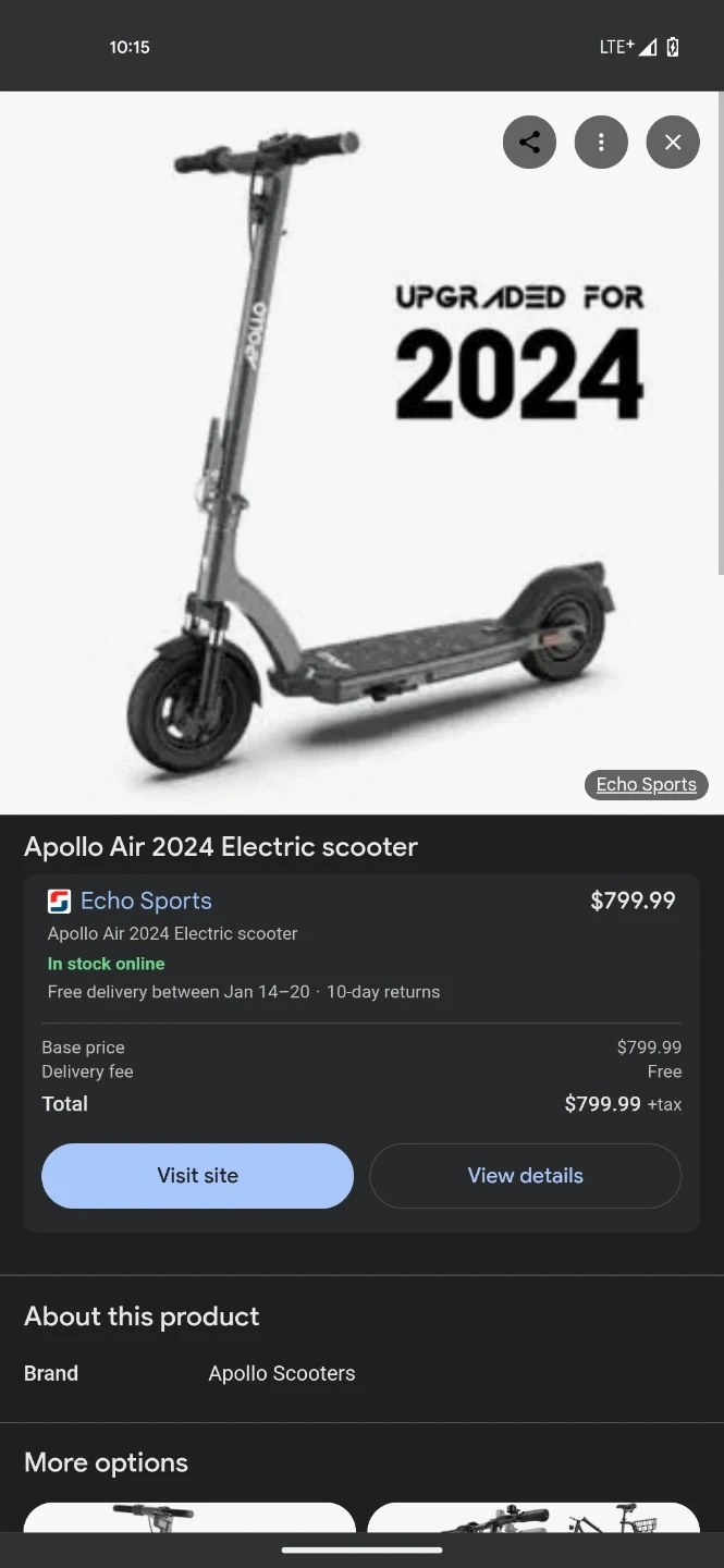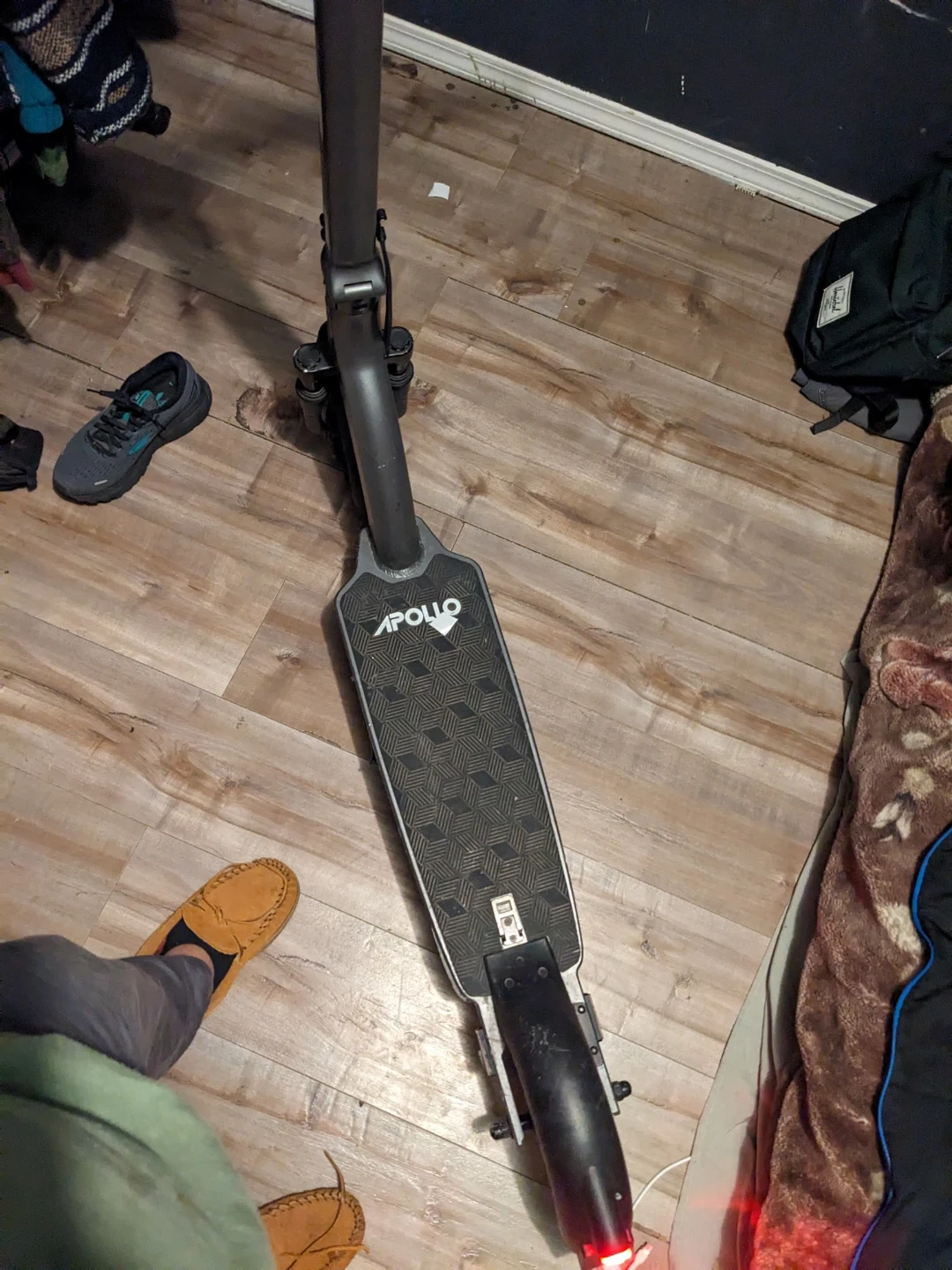 Selling an Apollo Air 2024 electric scooter! It's in great condition and ready for a new owner. This scooter is upgraded for 2024, offering a smooth and efficient ride. Originally, it retailed for $799.99. I got a new scooter so I want to get rid of this one I don't have the chargers but it works fine willing to sell it for half price or best offer