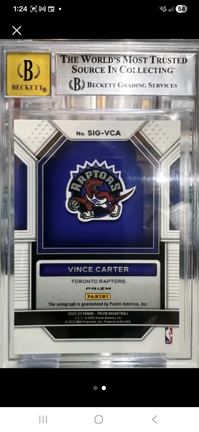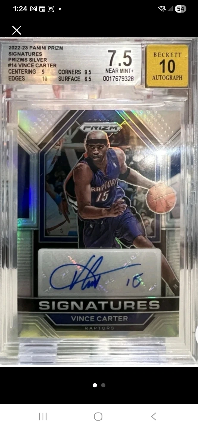 Selling a 2022-23 Panini Prizm Silver #14 Vince Carter autographed card! It's graded by Beckett: